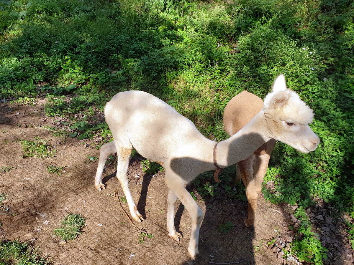 방목장 들어가는 문에서 방문객들을 유도하는 멍석 길을 알파카들이 점령했다. 고급 털옷 원료인 알파카 털에 흙먼지가 잔뜩 끼어있는 이유를 알 수 있다. 이 녀석들 몸이 간지러우면 흙 위에서 이리저리 구른다. 몽실한 꼬리가 귀엽지만 엉덩이와 꼬리 쪽은 건드리면 안 된다. 이런 초식동물은 자기 시야가 닿지 않는 쪽에서 자극이 오면 뒷발로 차는 본능이 있다.