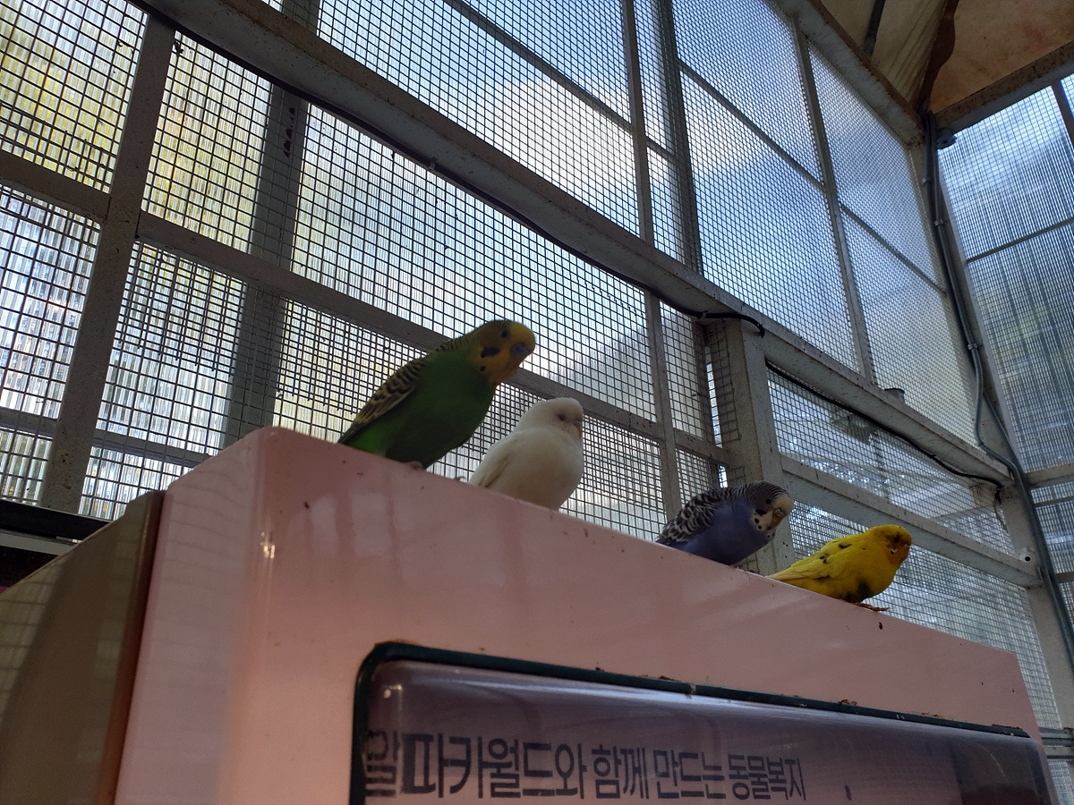어마어마한 새들이 새 모이를 쫓아다닌다. 새 모이도 안쪽의 자판기에서 살 수 있다. 새 모이를 손에 놓아두면 새들이 잔뜩 달라붙는다. 지니님이 새는 별로 안 좋아하니 적당히 구경한다.