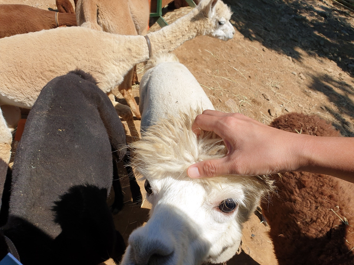 여기 알파카들은 사람에 익숙해져 있으면서 공격성도 적기 때문에 살짝 만지는 정도는 허락해준다. 다만, 기분 나쁘게 하면 얼굴에 침을 뱉는다고 한다.