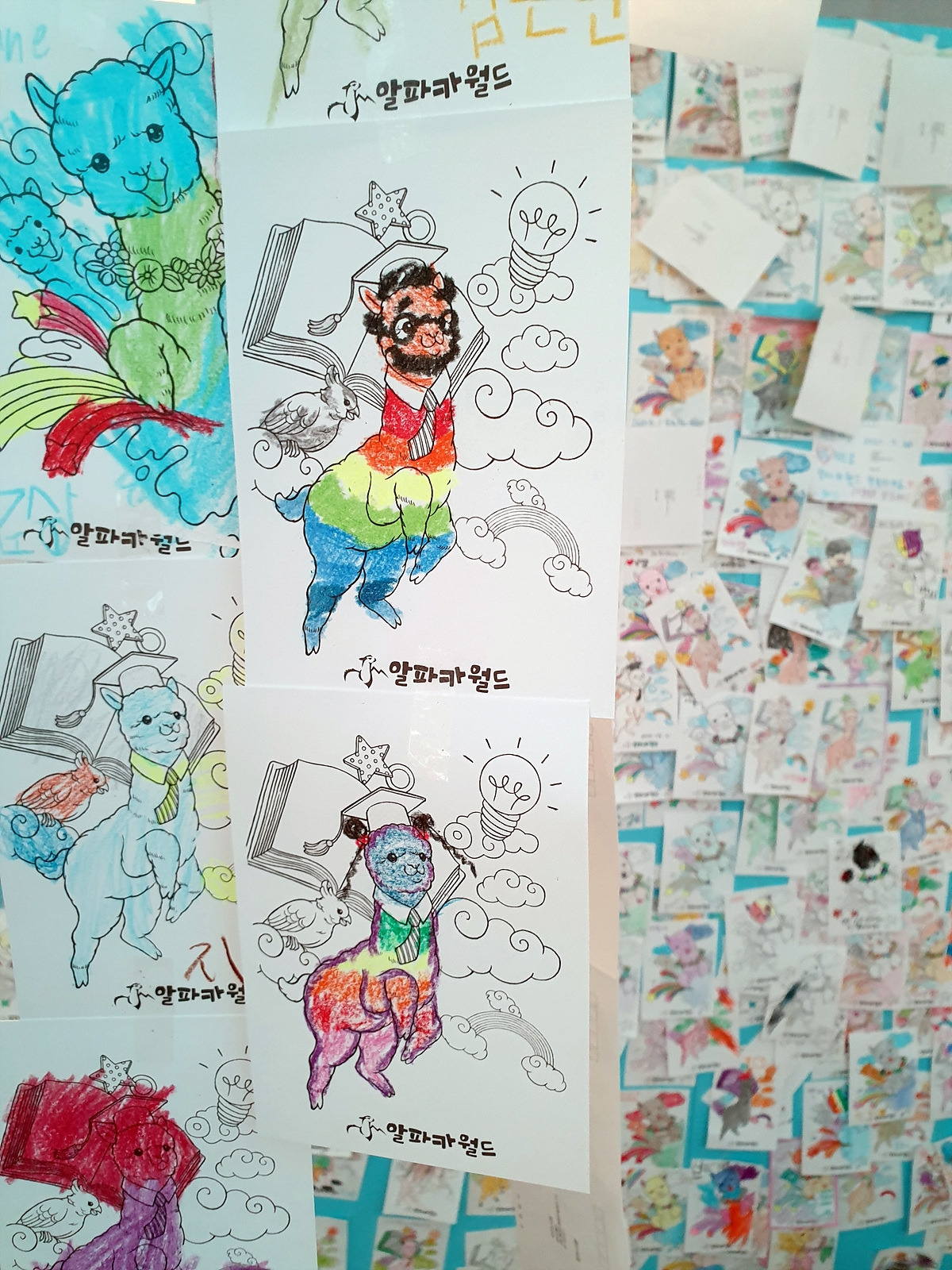 색칠나라는 말 그대로 아이들과 알파카 엽서에 색칠하면서 노는 곳이다.