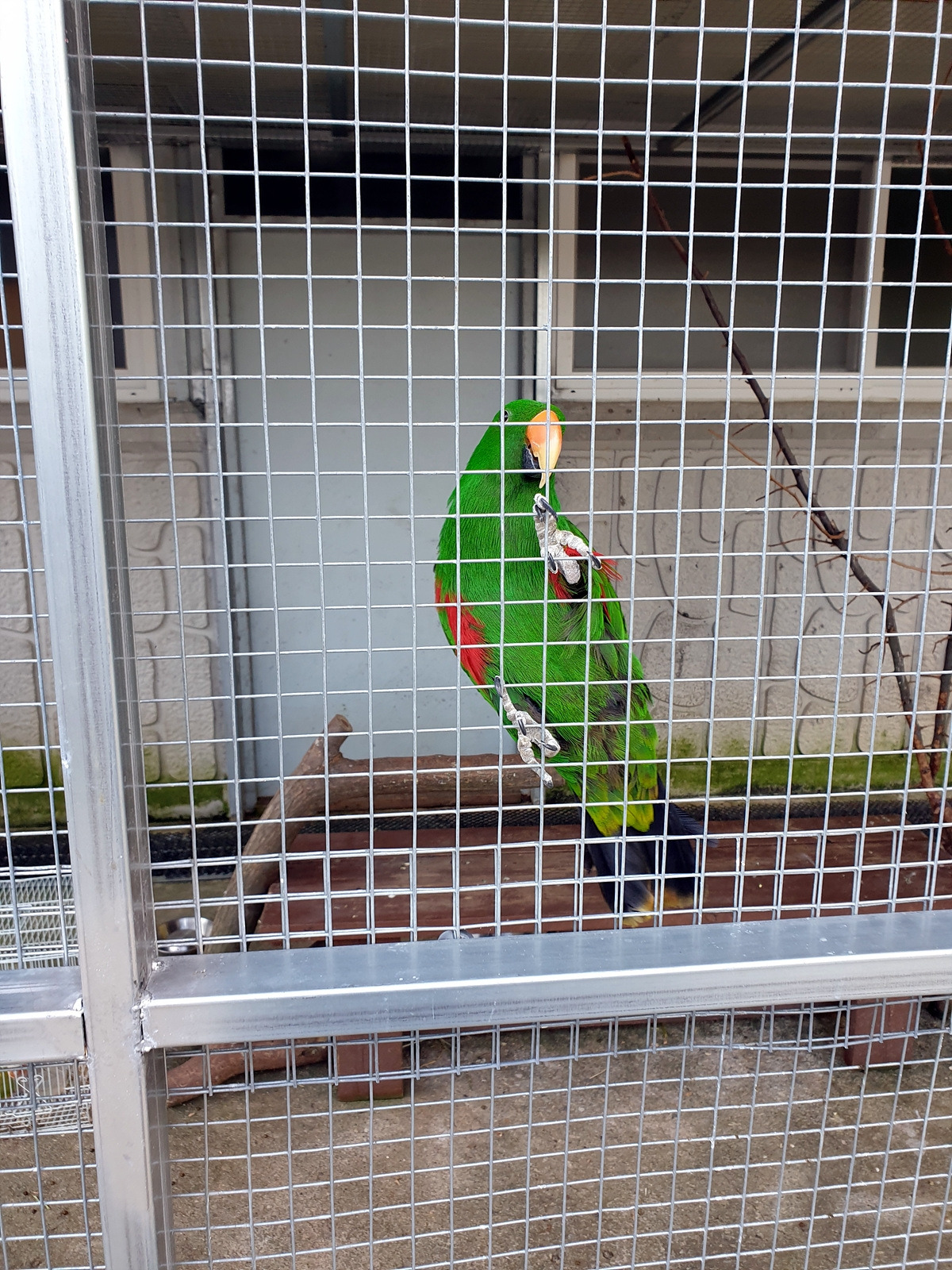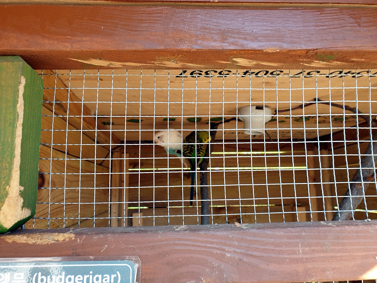 그 옆에는 잉꼬와 앵무도 있다. 앵무 녀석이 잉꼬 우리에서 놀다가 제 집으로 돌아간다.