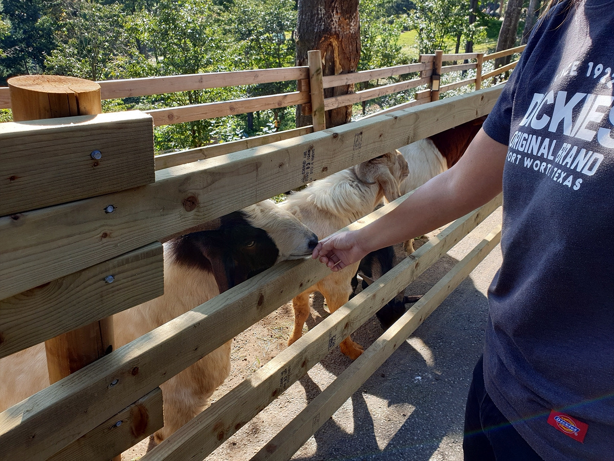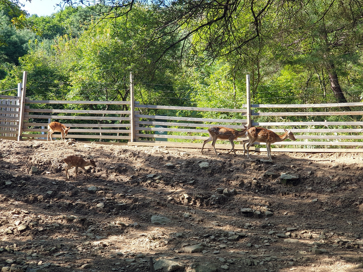 이제 아기 사슴 방목장에 갈 차례다. 방목장 울타리를 보니 산양들도 보인다.