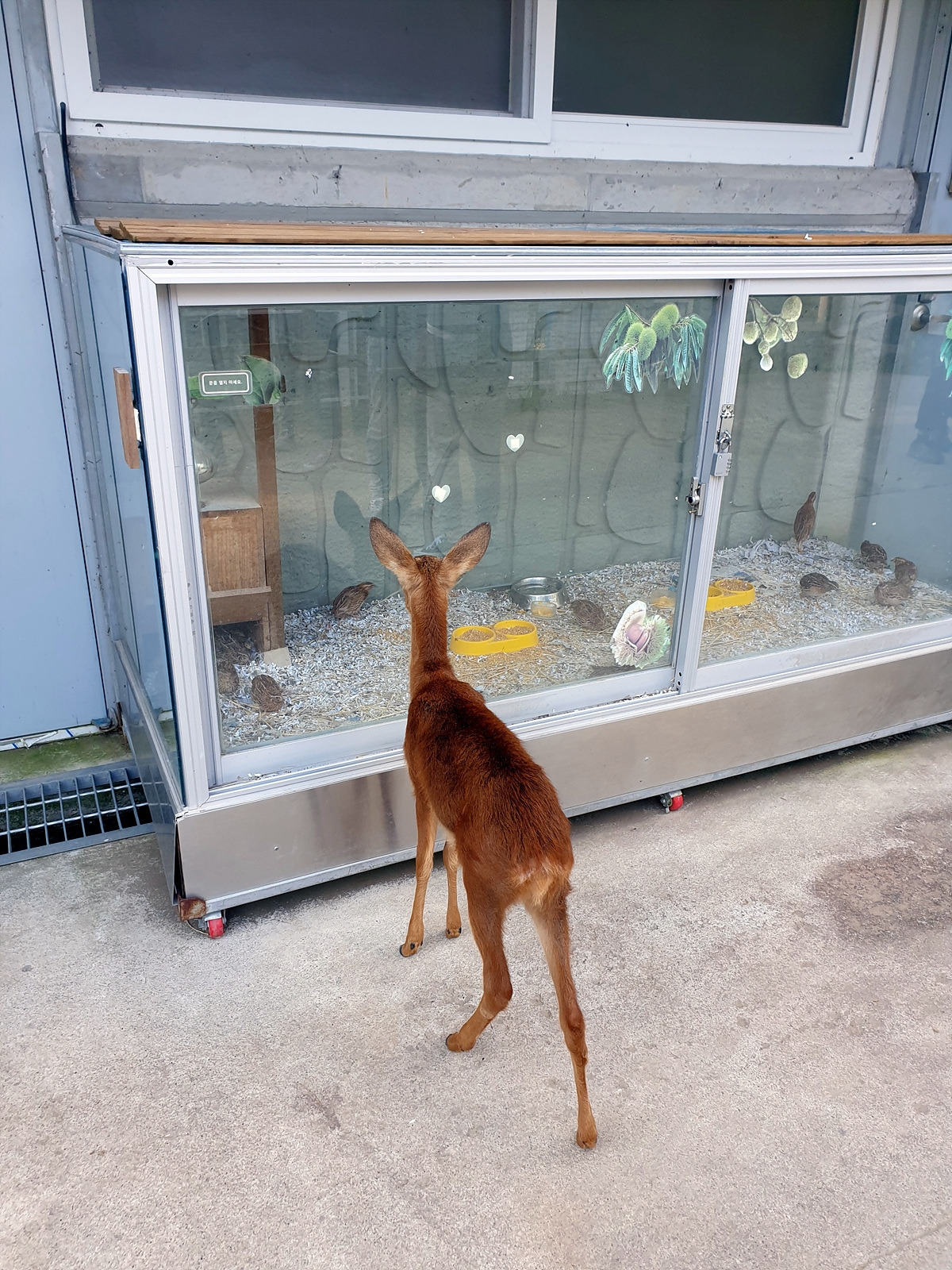 아기 사슴 한 마리가 여기저기 돌아다닌다. 사람들이 만져도 가만히 있다. 귀여운 사슴이 마음껏 만져도 허락해준다니 신기하다. 오히려 이 녀석은 사람들과 함께 있고 싶어서 여기저기 기웃거린다.