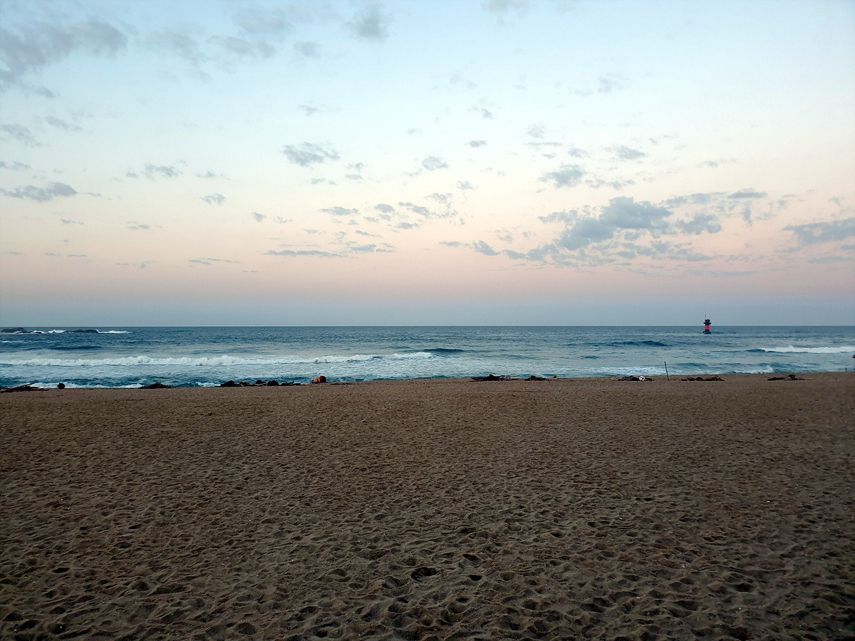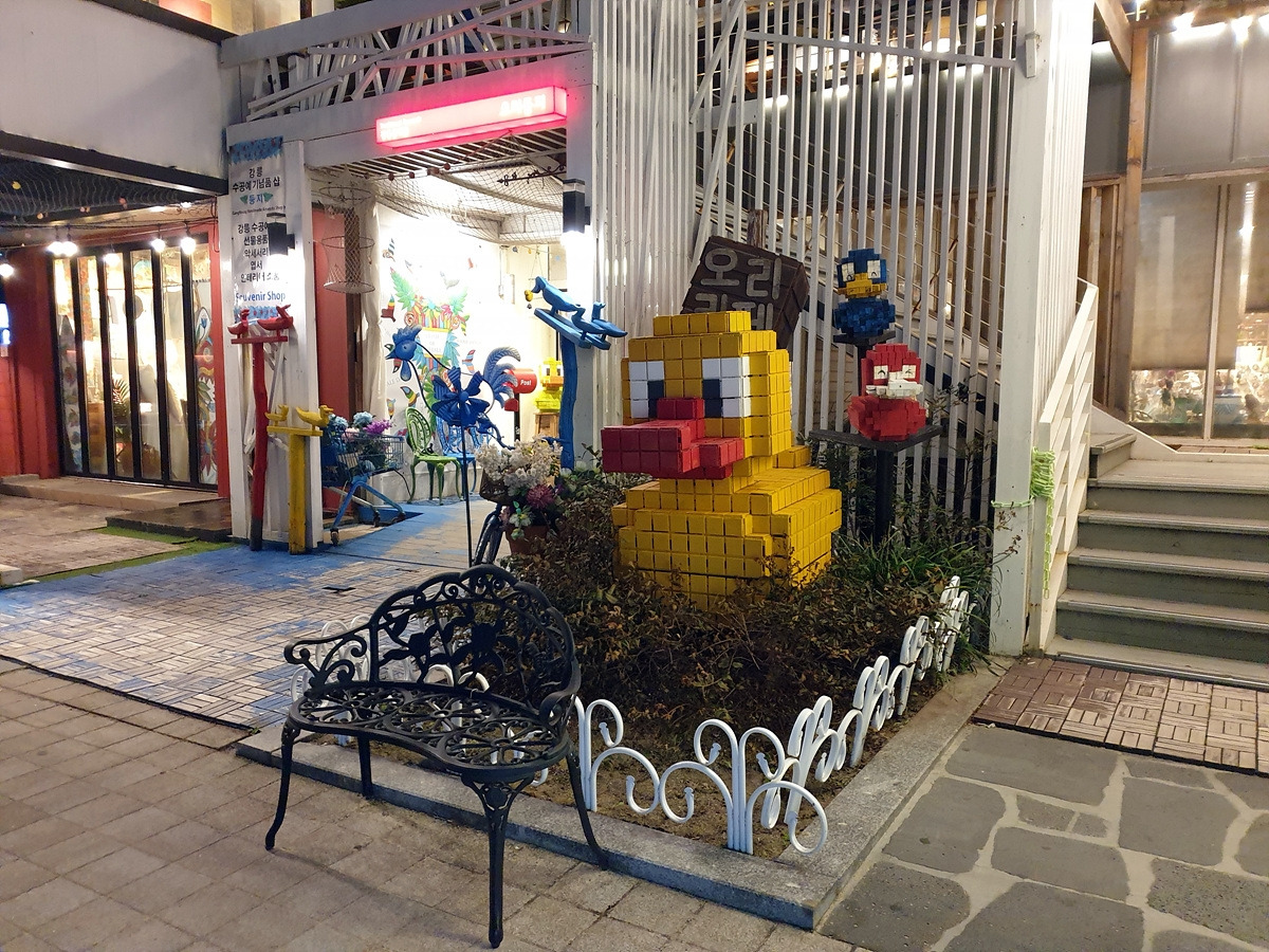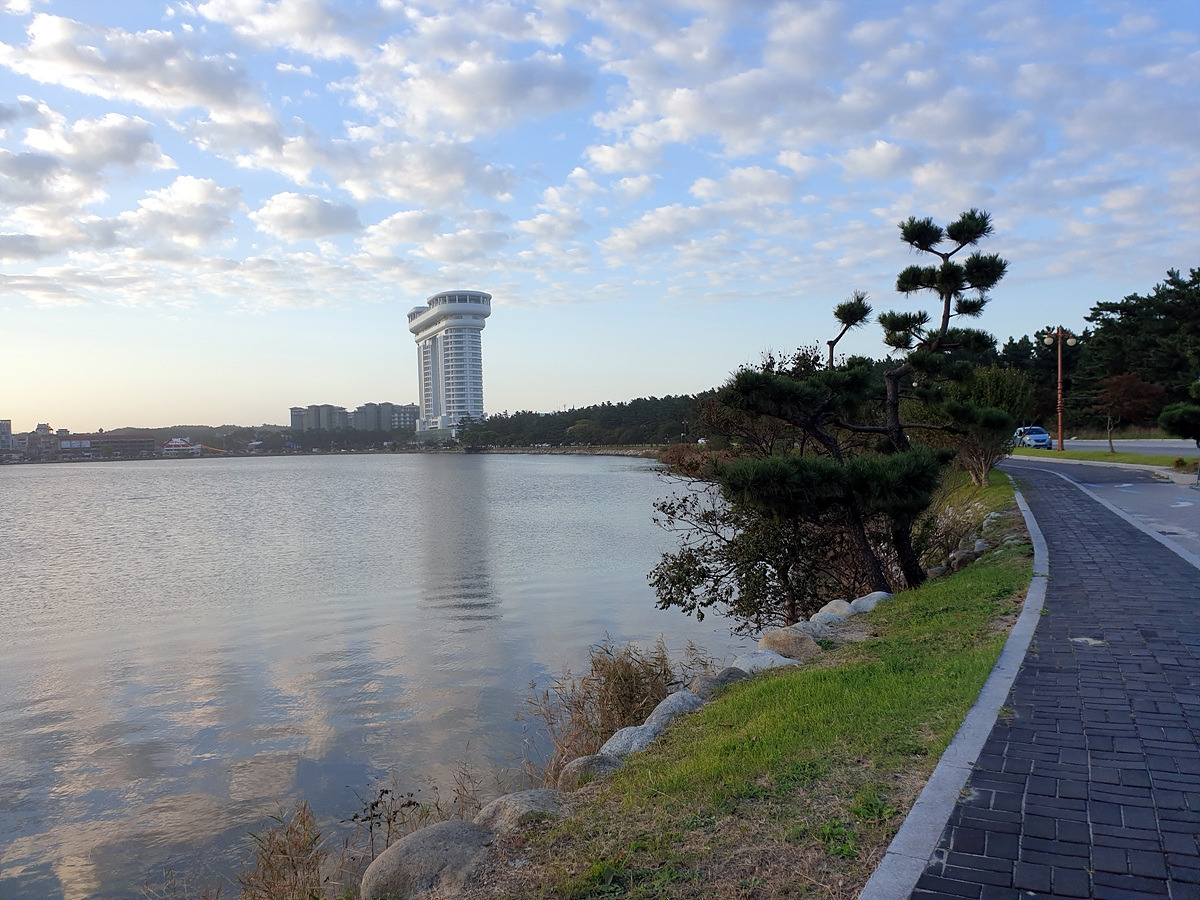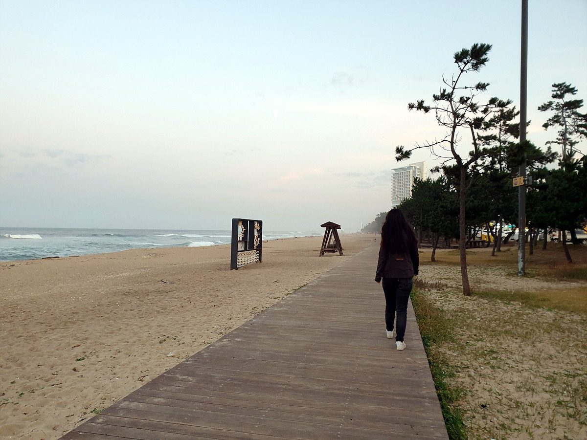 라카이와 스카이베이 호텔 근처까지 갔다가 마땅히 저녁 먹을 곳이 없어서 해변길을 따라 강문해변까지 간다.