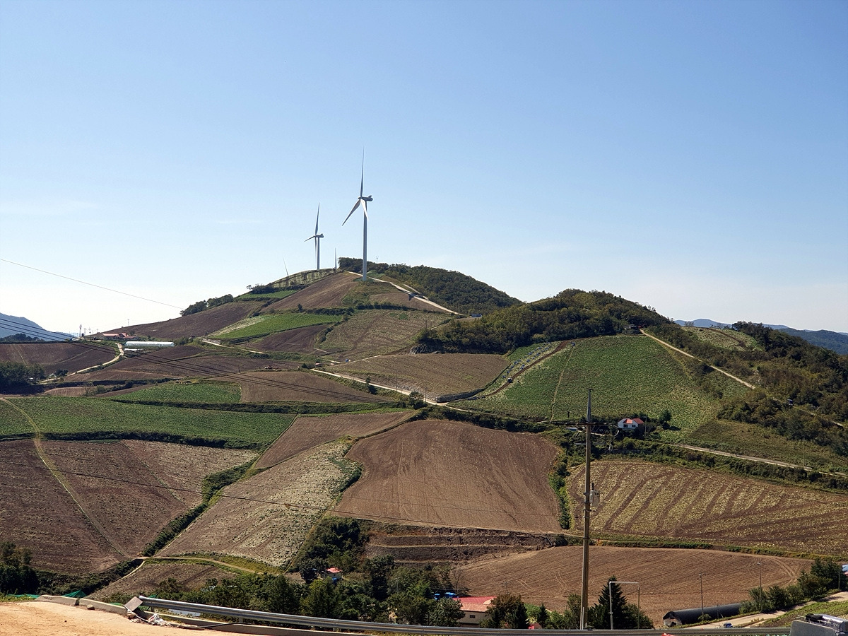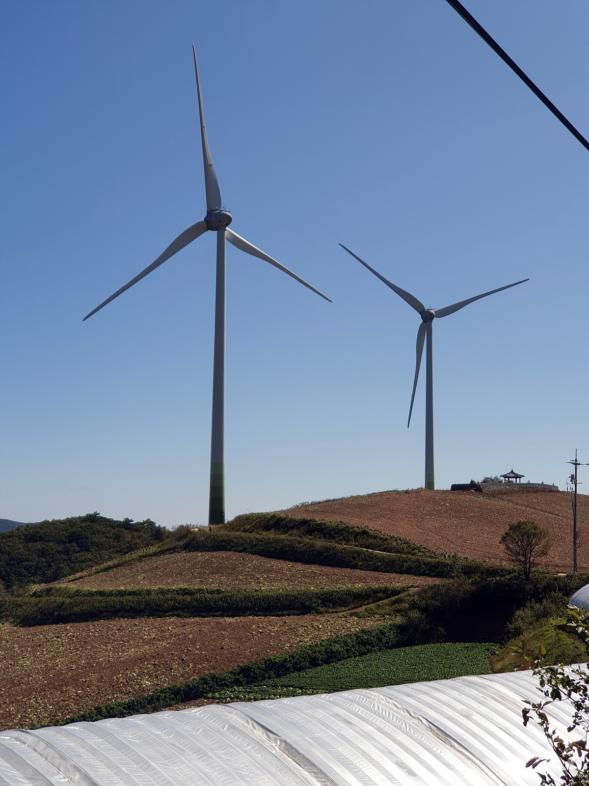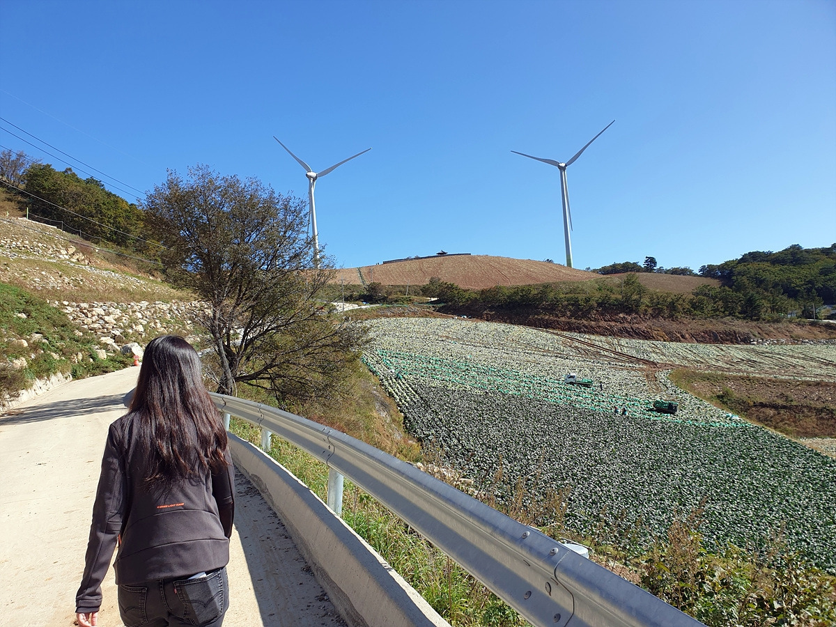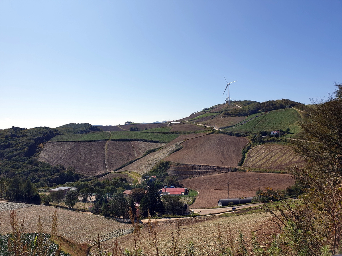 풍력발전기와 고랭지 채소밭... 풍력발전기가 있으면 평범하게 이쁘던 곳이 보기 힘든 풍경이 된다.