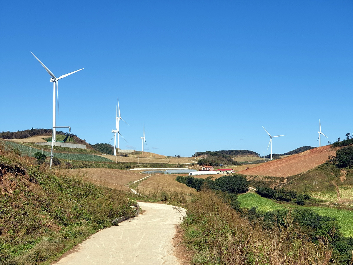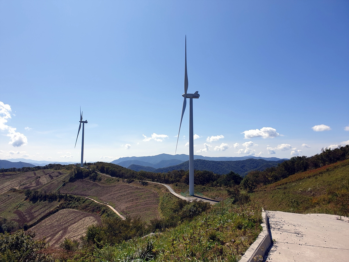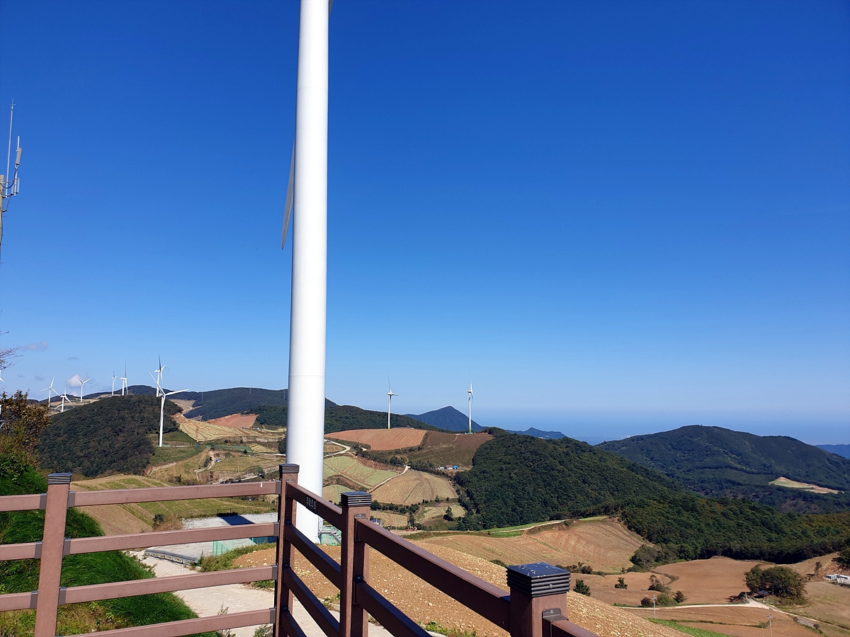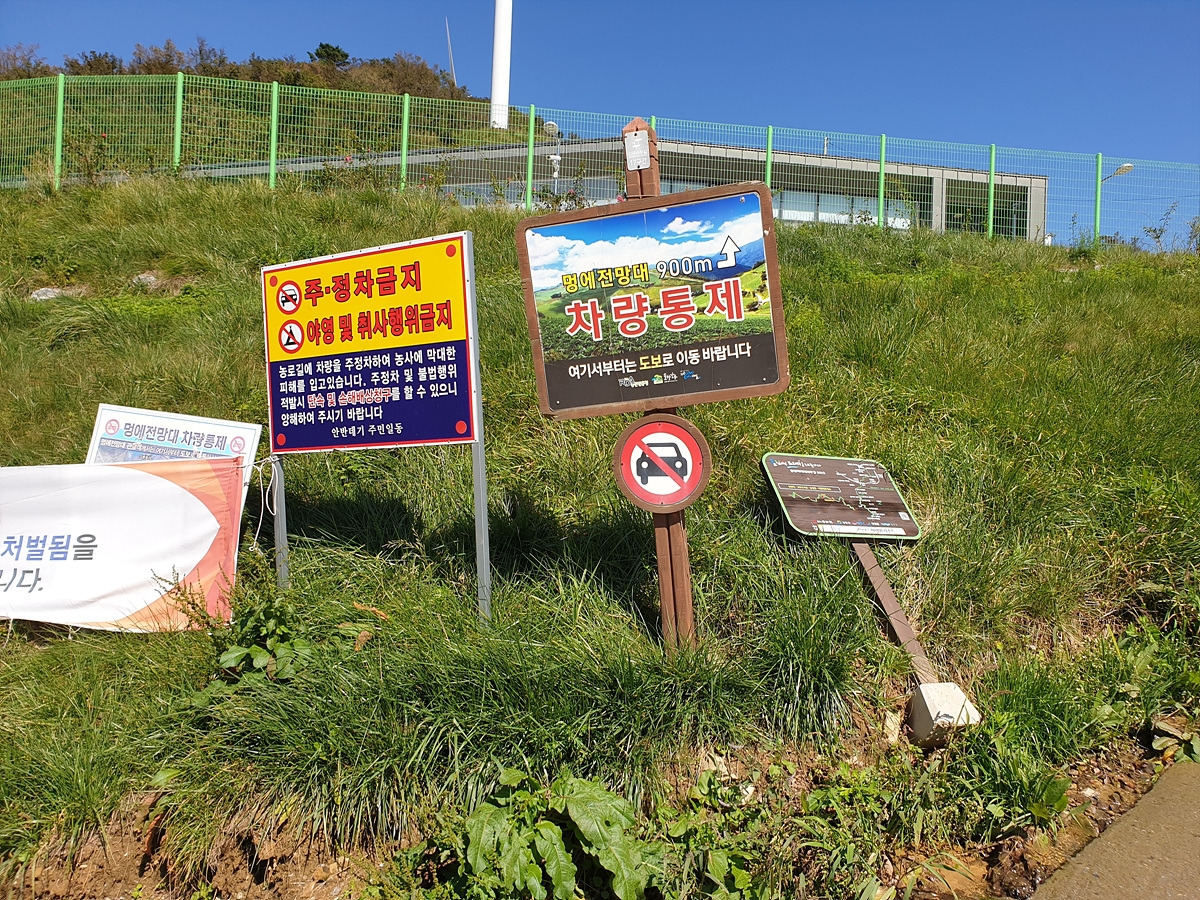 조금 올라가니 또 화장실과 주차장이 있다. 일반 관광객 차량은 여기까지 들어와도 되나 보다. 멍에전망대와 풍력발전기가 멋지다.