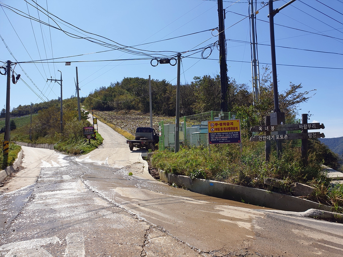 여기는 관광지가 아닌 고랭지 채소 재배단지이기 때문에 큰 트럭들이 드나드는 곳이다. 아주 유명한 차박지 중에 하나인 걸로 아는데 차량은 통제, 주정차 금지에 야영 및 취사행위 금지라고 붙어있다.