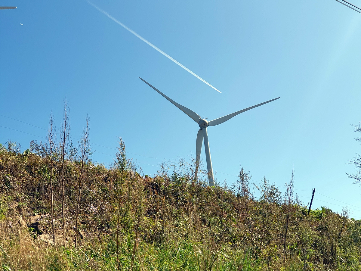 비행기가 풍력발전기 위를 지난다. 내년에는 비행기를 타고 해외 자전거 여행을 갈 수 있을까... 코로나 바이러스가 통제되지 않는 현재 상황을 봐선 무리라고 생각한다.