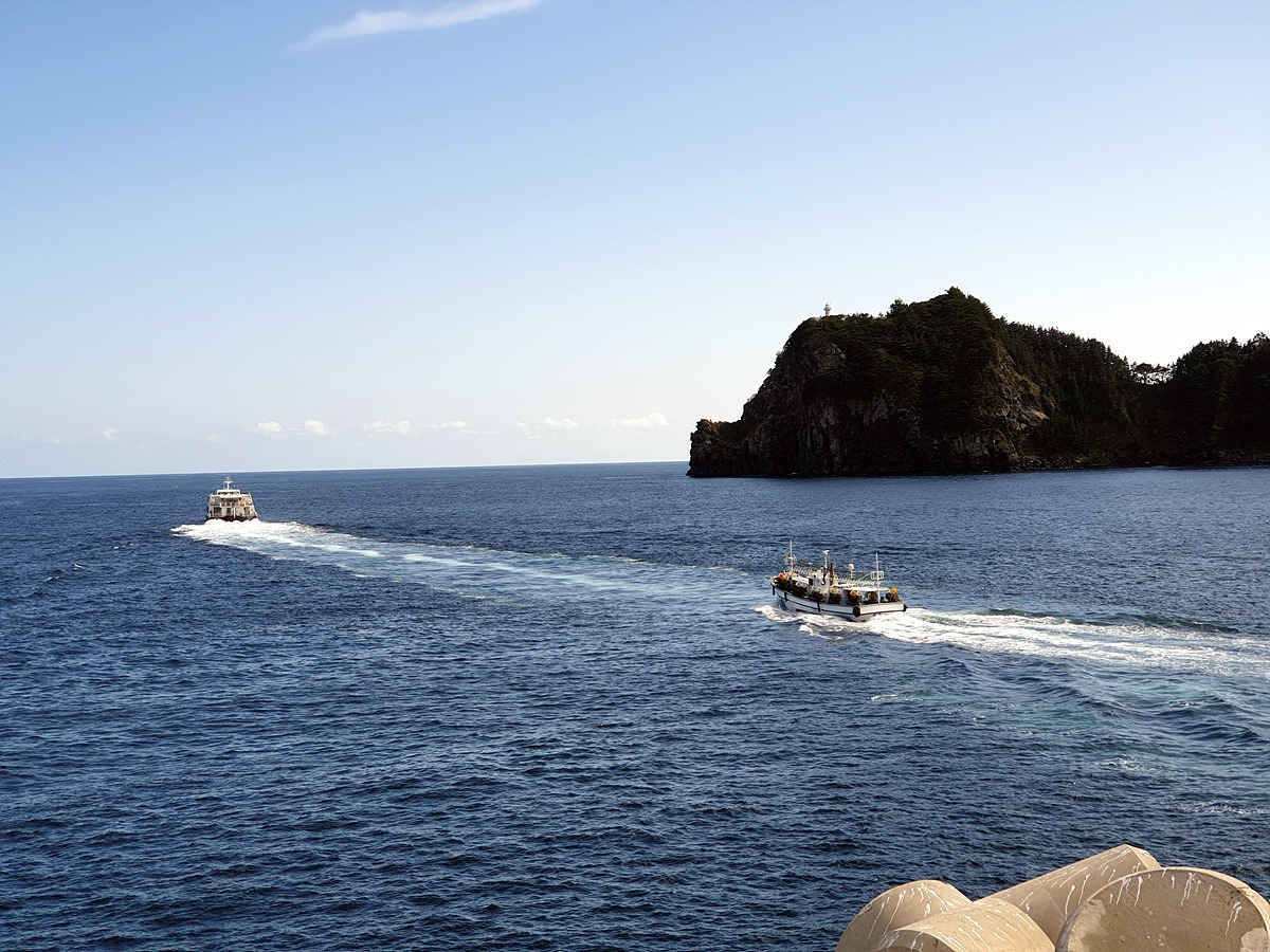 방파제에서 돌아나오는데 작은 배가 출항한다. 스쿠버 다이버들이 준비 중이다. 우리보다 일찍 예약해서 추석에 울릉도 다이빙을 즐기는 사람들이다. 울릉도의 스쿠버 다이빙도 좋다고 해서 우리도 해보려 했는데 딱 다이빙하는 날 만큼 결항되어 다이빙도 다 취소되었다.
