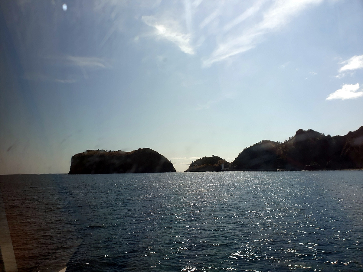 강릉발 저도행 배는 바로 저동항으로 쑥 들어가는게 아니다. 울릉도의 북쪽을 휘돌아 남동쪽의 저동항을 간다. 유람선 역할도 하는 셈이다.이때가 아니면 보기 힘든 곳도 있으니 울릉도를 자세히 살펴보자.