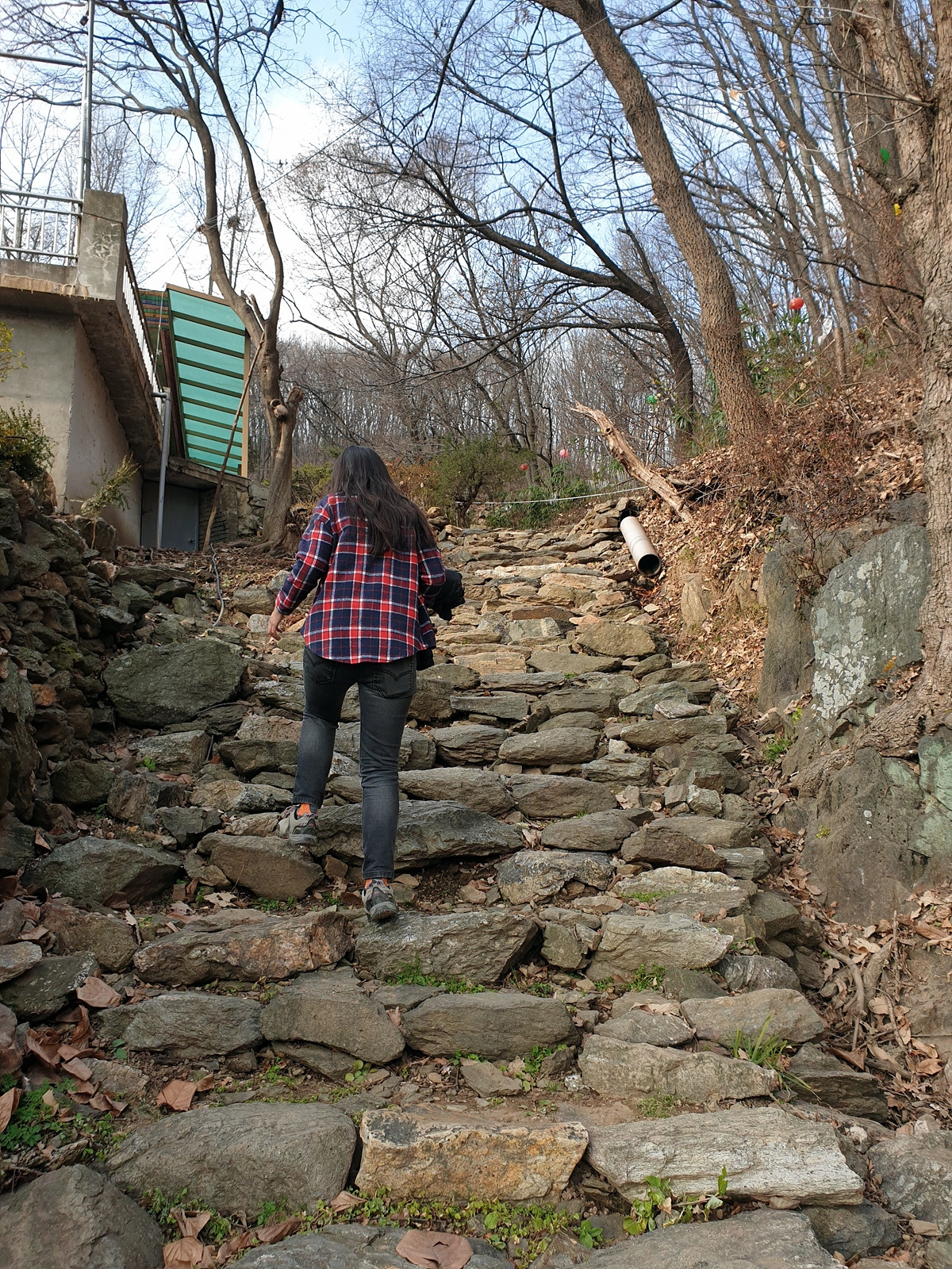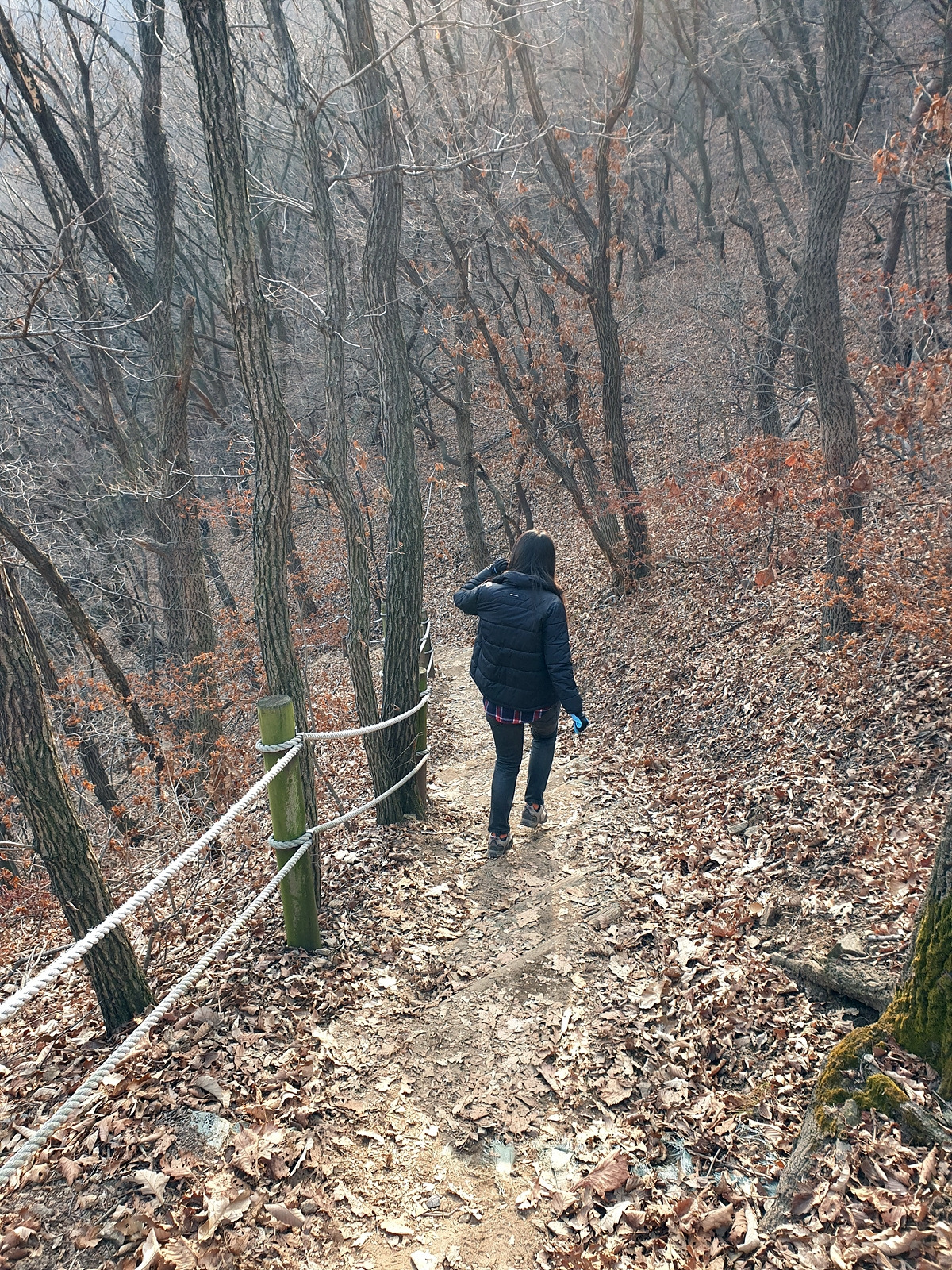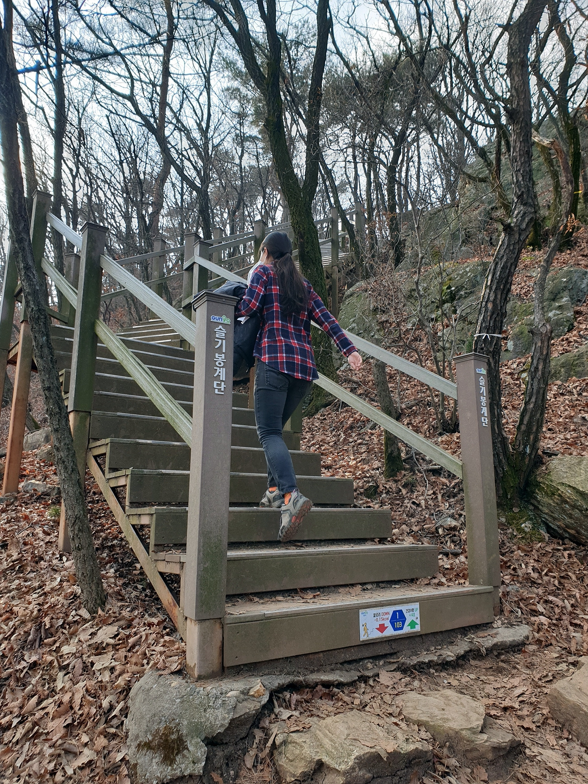 운동 시설들이 있는 작은 공터를 지나 계속 올라간다. 등산 계단과 나무뿌리가 얽힌 흙길이 반복되는 조금 지루한 길이다.