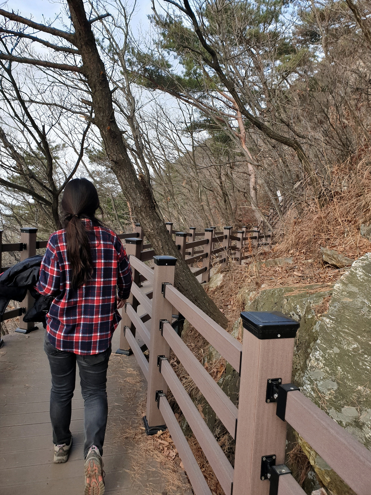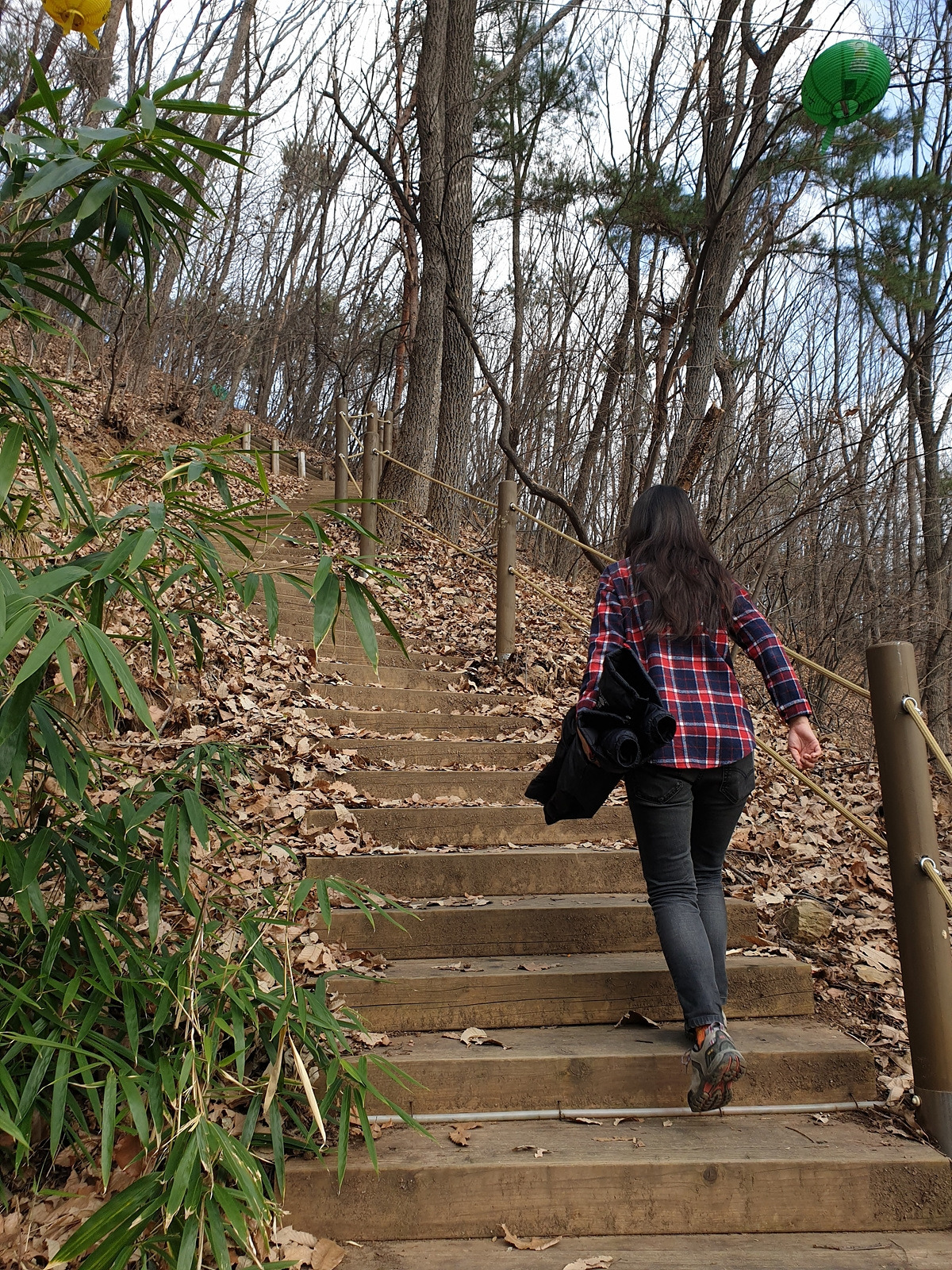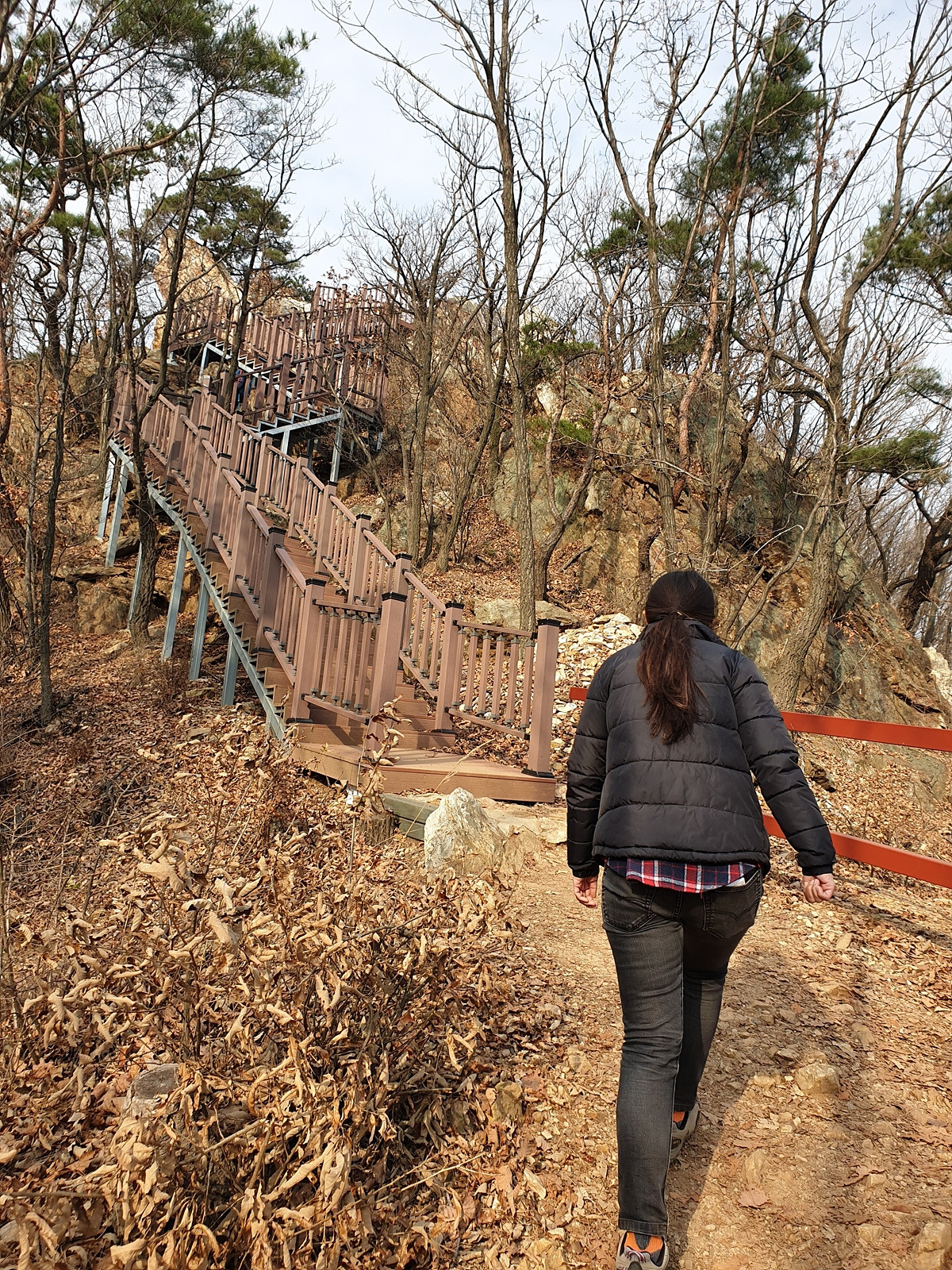 운동 시설들이 있는 작은 공터를 지나 계속 올라간다. 등산 계단과 나무뿌리가 얽힌 흙길이 반복되는 조금 지루한 길이다.
