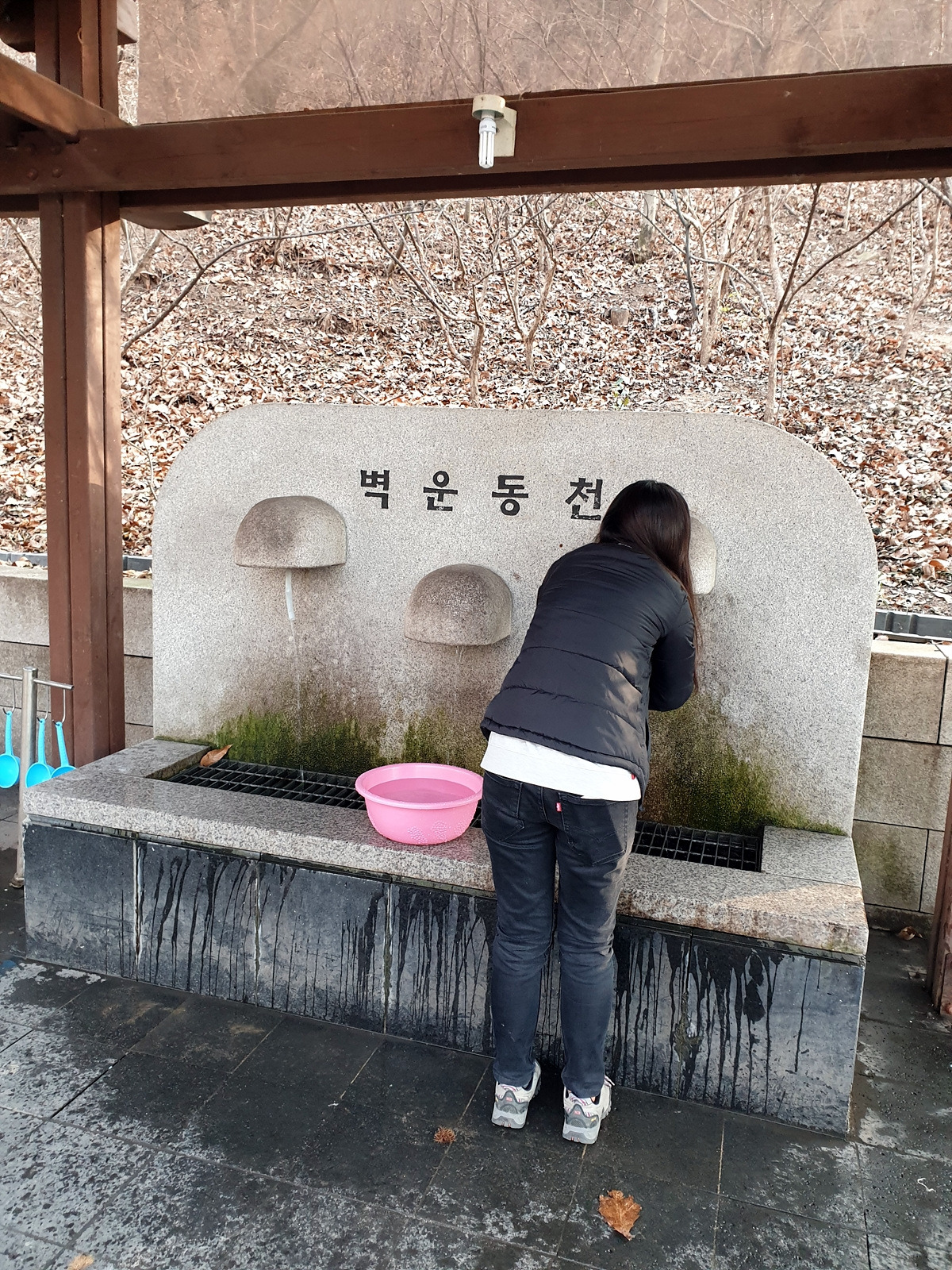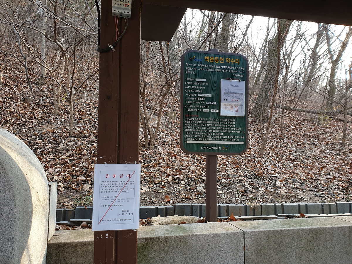 벽운동천이라는 약수터가 있지만 음용 금지라 손만 씻는다.