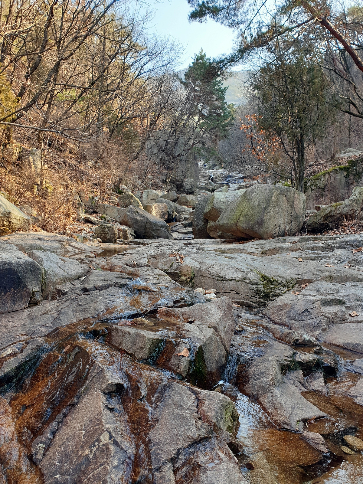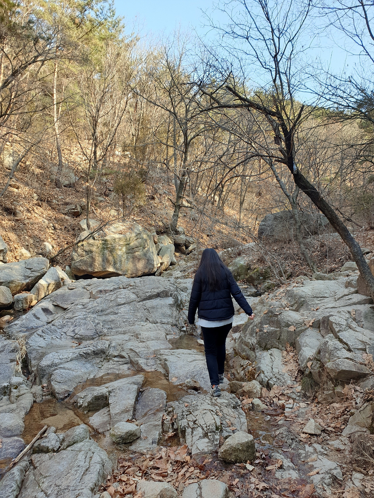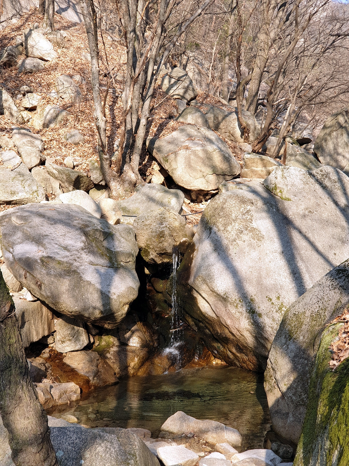 수락산은 바위산이다. 올라가는 길에도 계곡을 따라 바위 위를 걸어야 하는 곳이 많다.