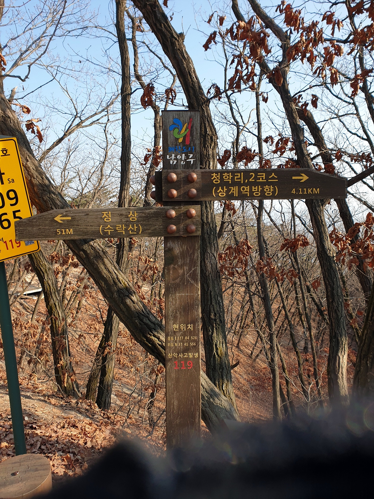 수락산은 밧줄을 잡고 올라가는 구간이 많으니 그립감 좋은 장갑이 필수 준비물이다. 등산의 기본 준비물은 등산화, 장갑이고 등산을 많이 한다면 무릎 충격을 줄이기 위한 등산스틱 세트와 무릎보호대를 해야 한다. 지니님도 긴 장갑을 참 싫어하는데 이번 산행에서 긴장갑이 반드시 필요한 것을 제대로 느꼈을 것이다.