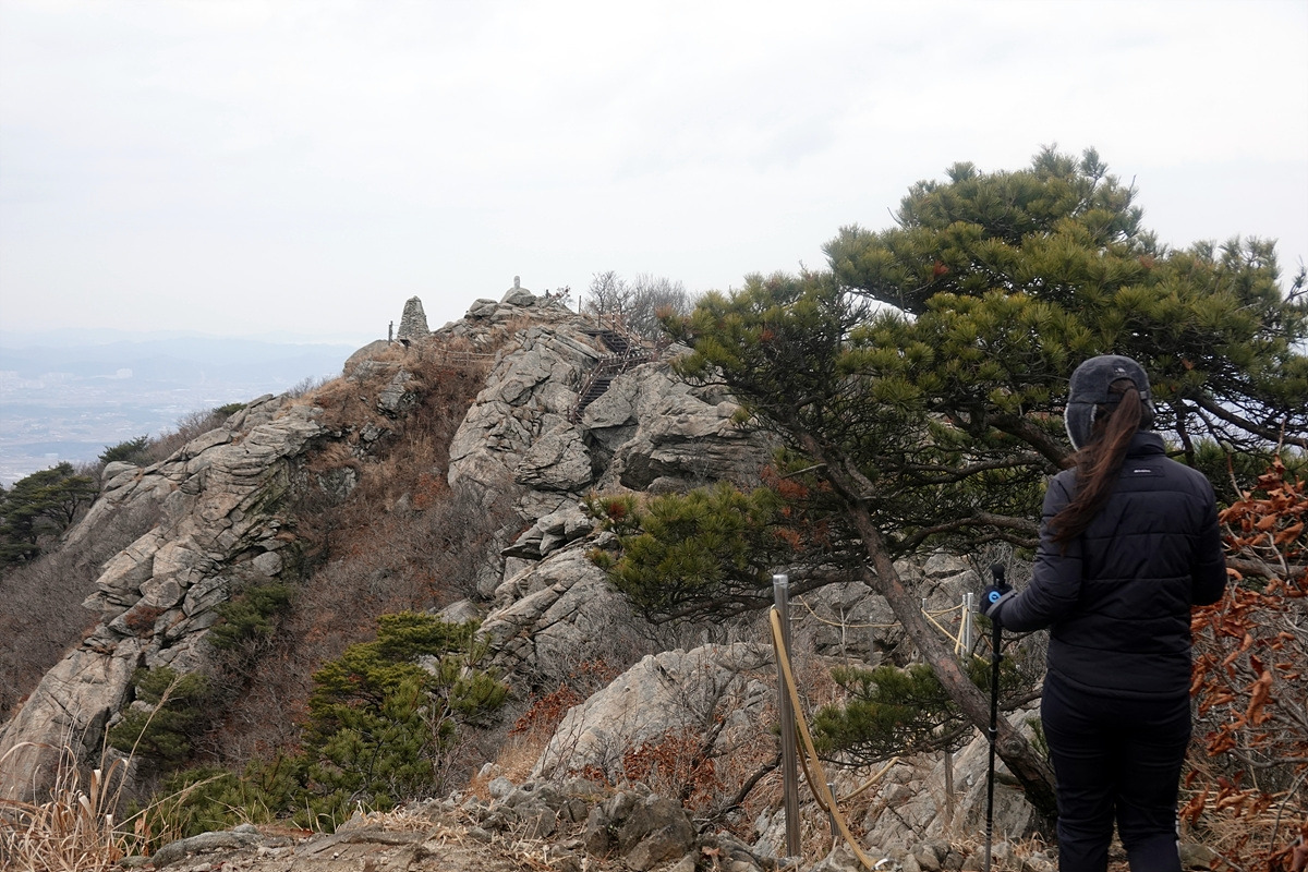 능선을 따라 가면 암릉구간에서 시야가 트인다. 경치를 즐기면서 걷다 보면 일락사에서 용현 자연휴양림으로 넘어가는 사잇고개가 나온다.