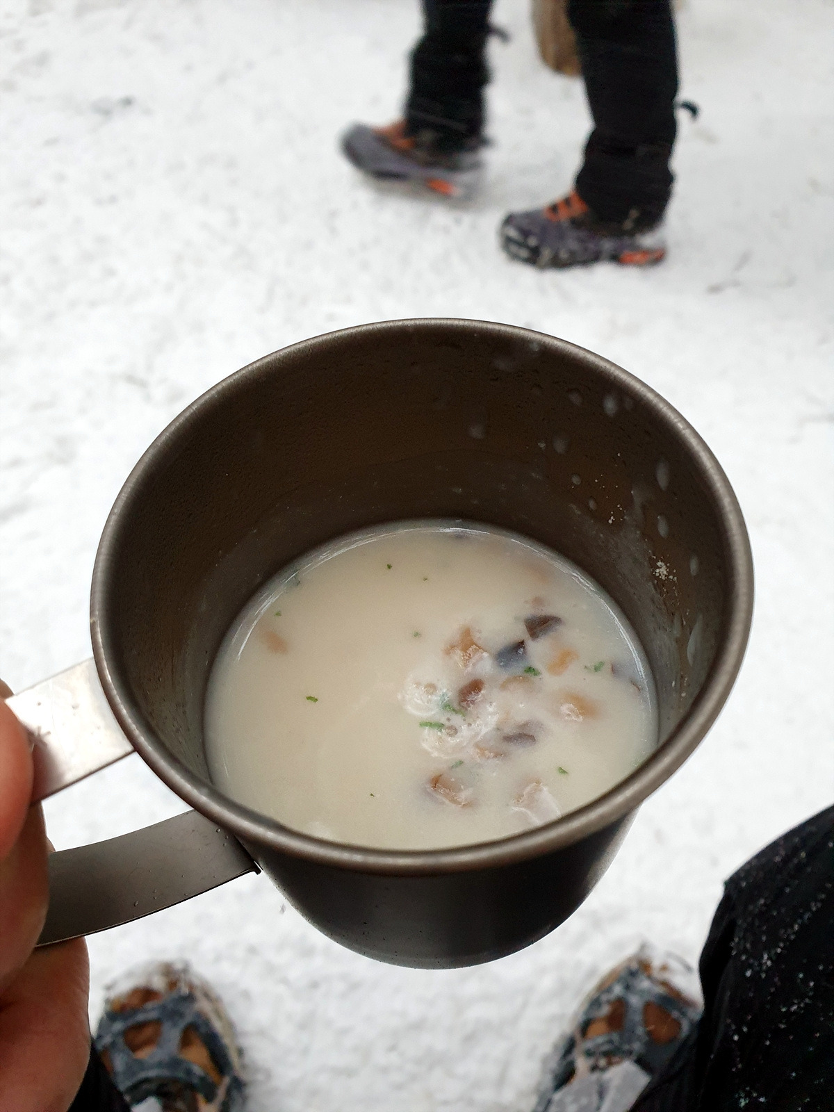 반재에 도착했다. 여기에도 쉼터가 있다. 어려운 코스는 아니지만 많이 걸었으니 여기서 쉬어가기로 한다. 오늘 간식은 지니님이 챙겨놓은 수프와 과자들이다. 보온병에 챙겨 온 뜨거운 물이 딱 수프 2인분이다. 짐을 간단하게 싸는 것을 좋아하다 보니 남들처럼 몇 첩 도시락이나 과일 상자 같은 것도 없다.