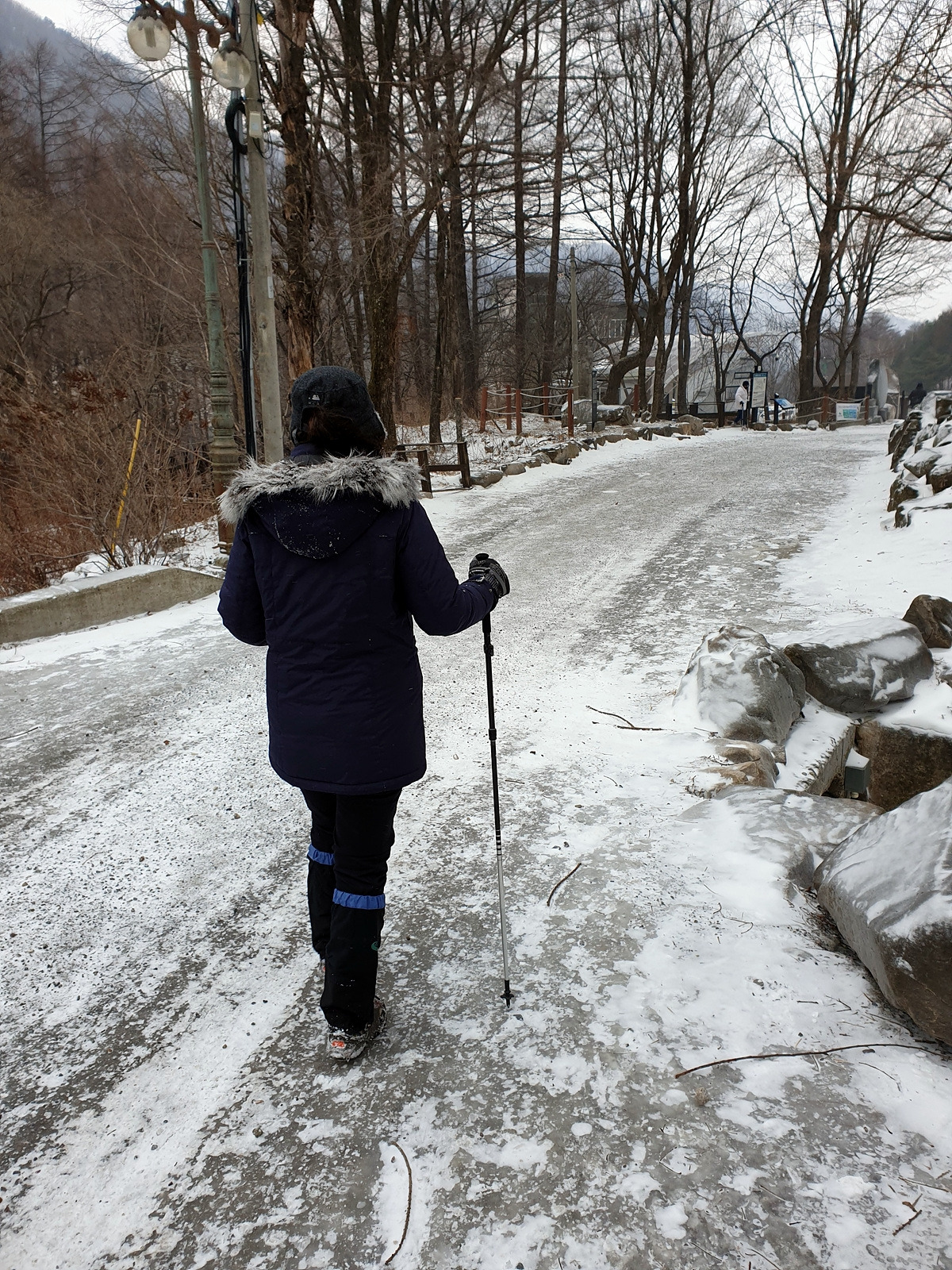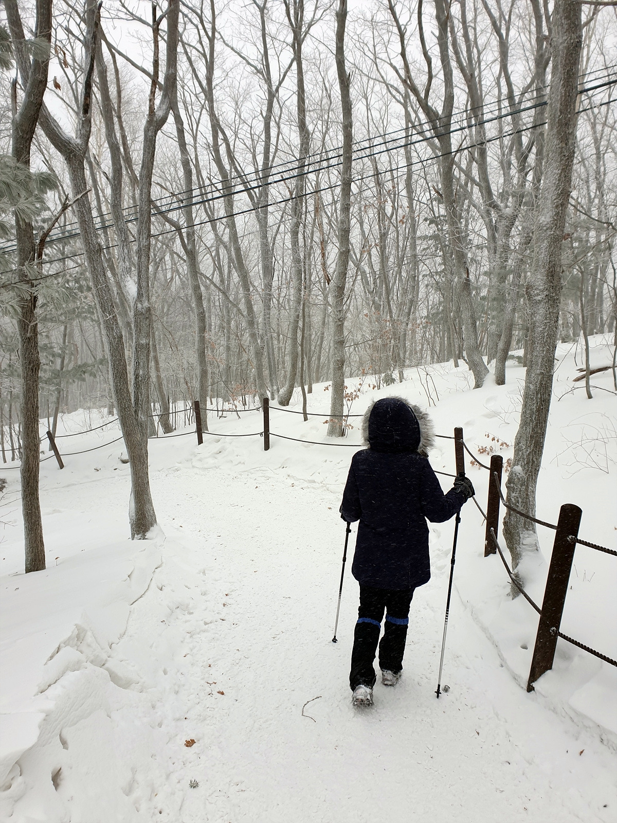 어렵지 않은 길이지만 눈이 쌓인 오르막길을 계속 걸으니 땀이 나긴 한다.