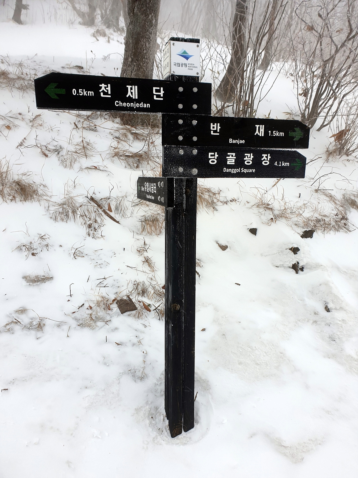 천왕단 아래에 태백산 표지석에는 사람들이 사진 찍으려고 바글바글 모여 있다. 그놈의 인증이 뭔지... 근처에서 대충 사진을 찍고 당골광장 방향으로 내려간다.