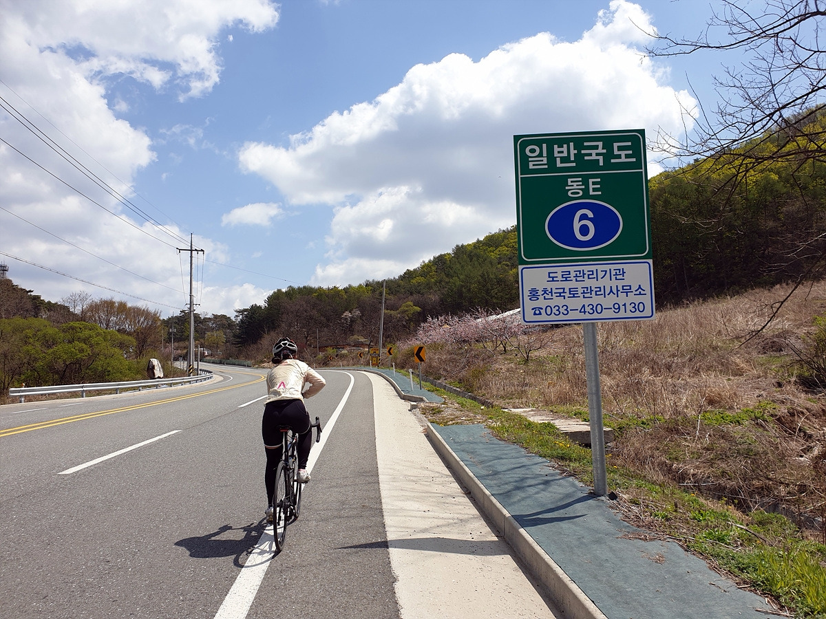 풍수원 삼거리에서 6번 국도와 만난다. 6번 국도는 한 자릿수의 큰 도로지만 여기서부터 5번 국도와 만나기 직전까지는 꽤 한산한 편이고 횡성 읍내를 벗어나면 다시 차량통행이 적어 자전거 타기에 나쁘지 않다.