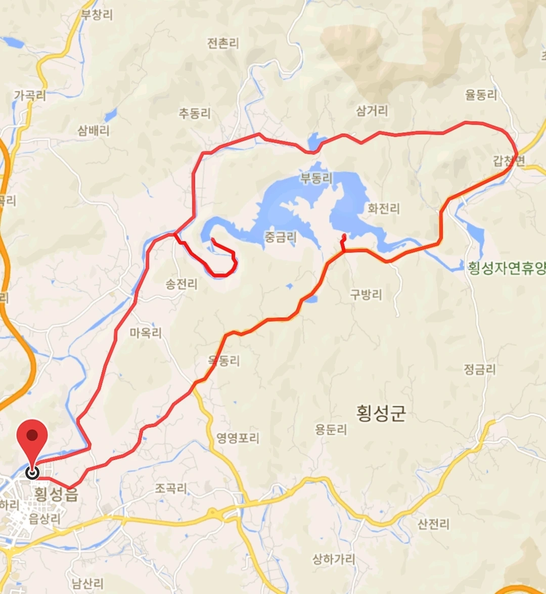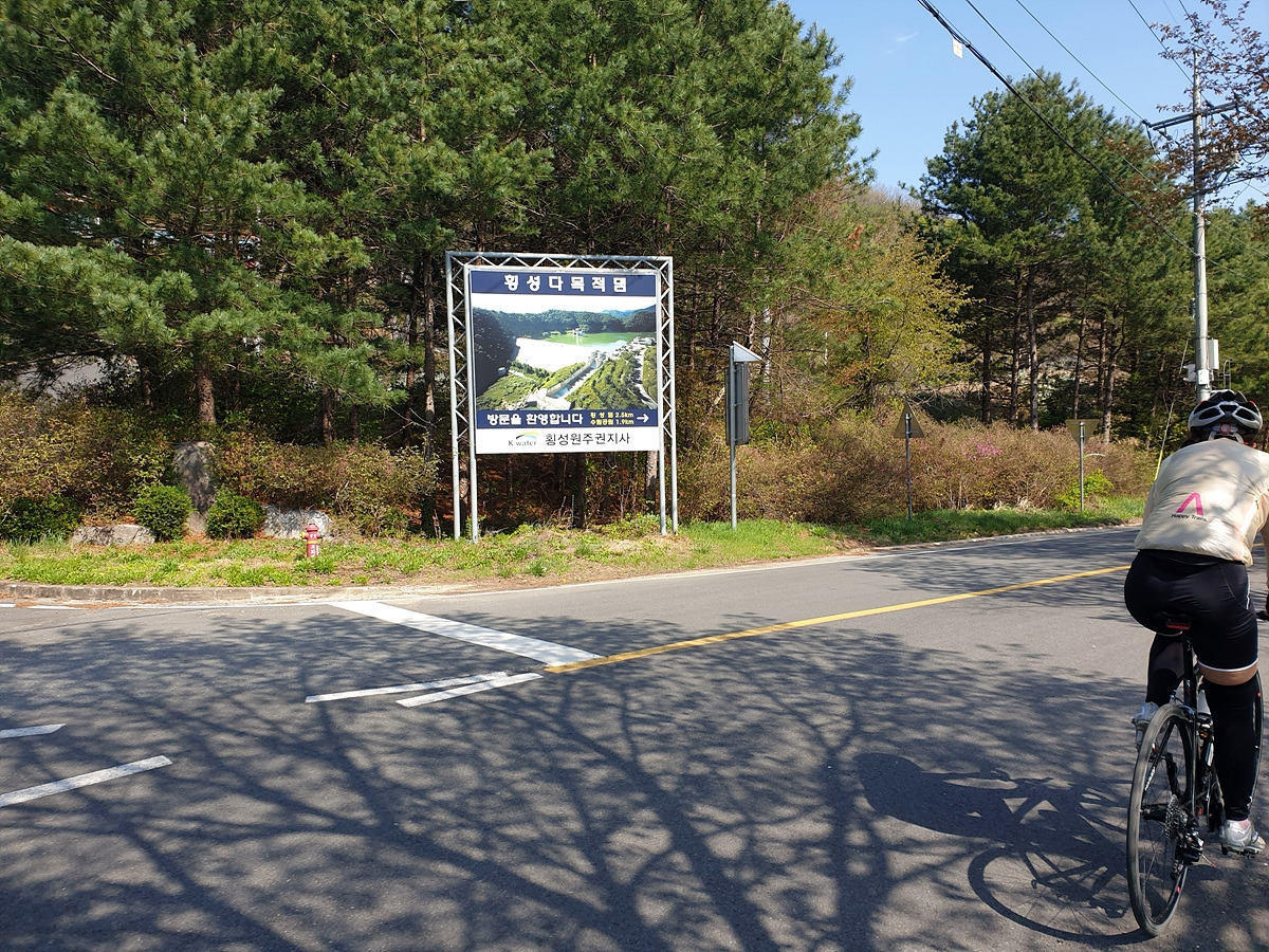 중간 이정표가 자꾸 횡성 종합운동장이라 쓰여 있어 헷갈리게 하지만 읍내 들어가기 직전의 갈림길이 최단거리이자 제대로 된 자전거 코스다.