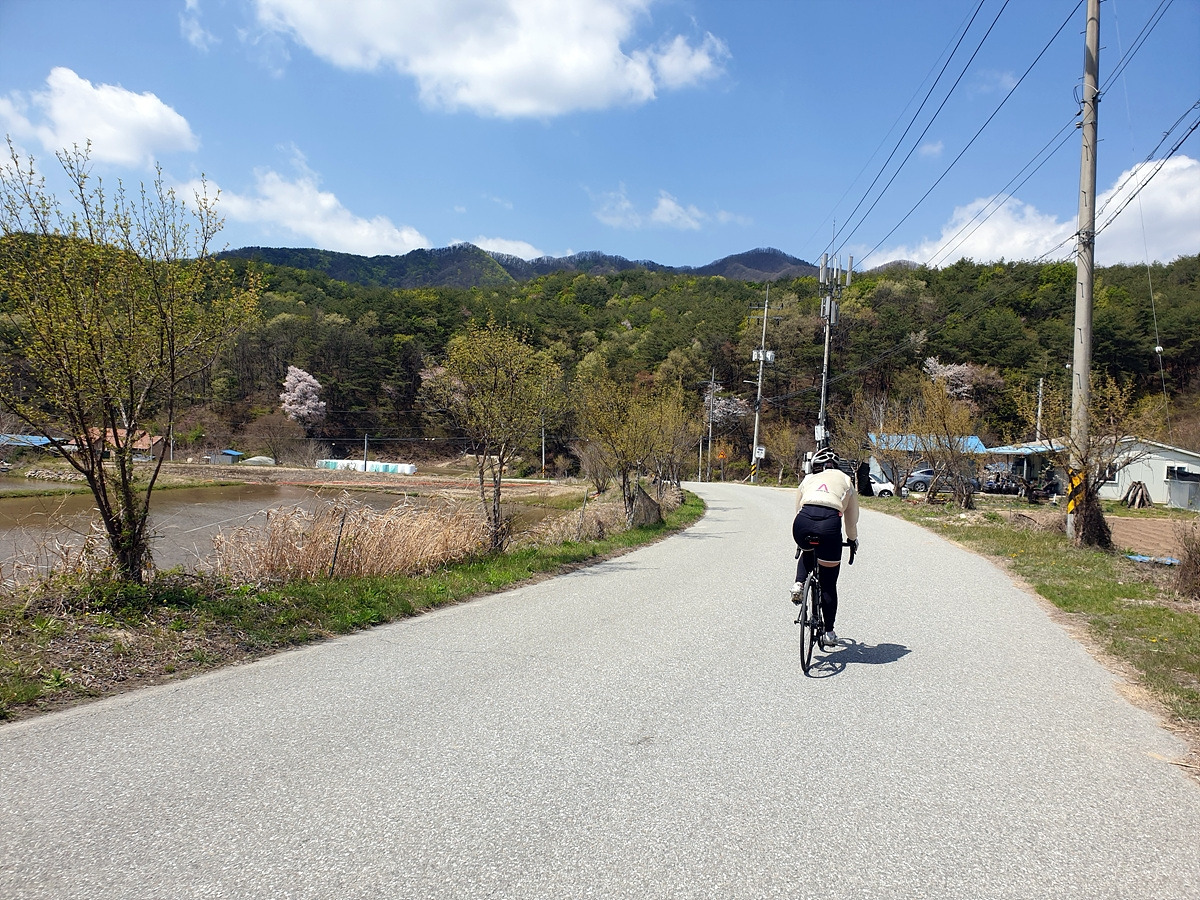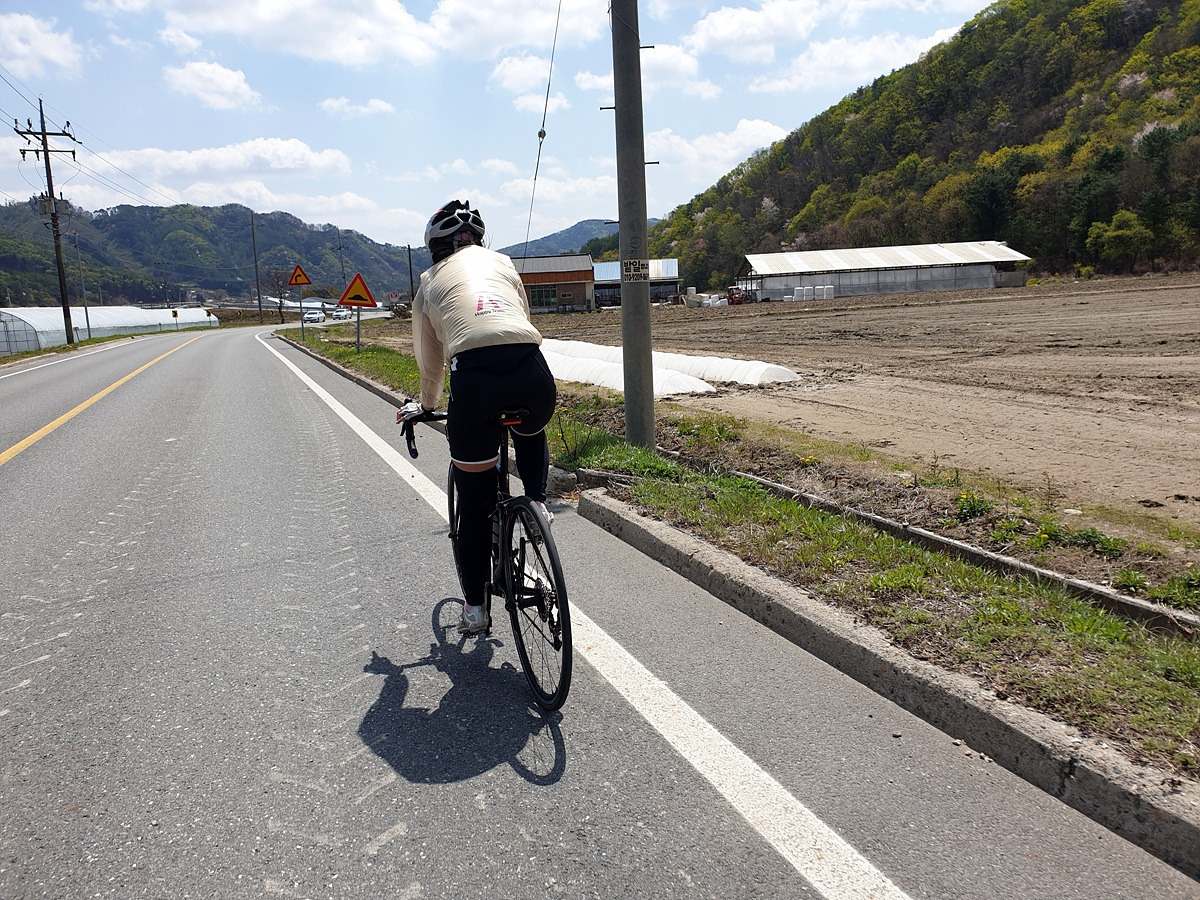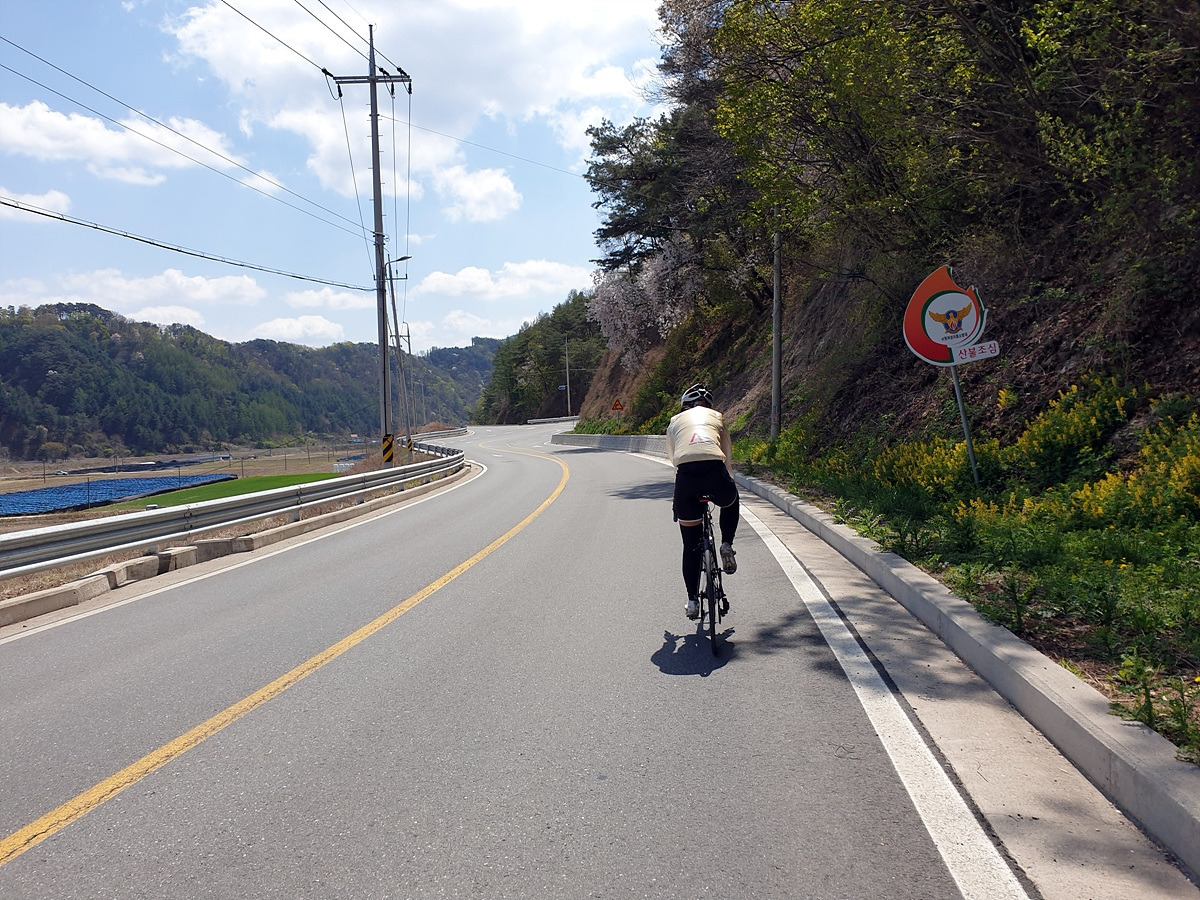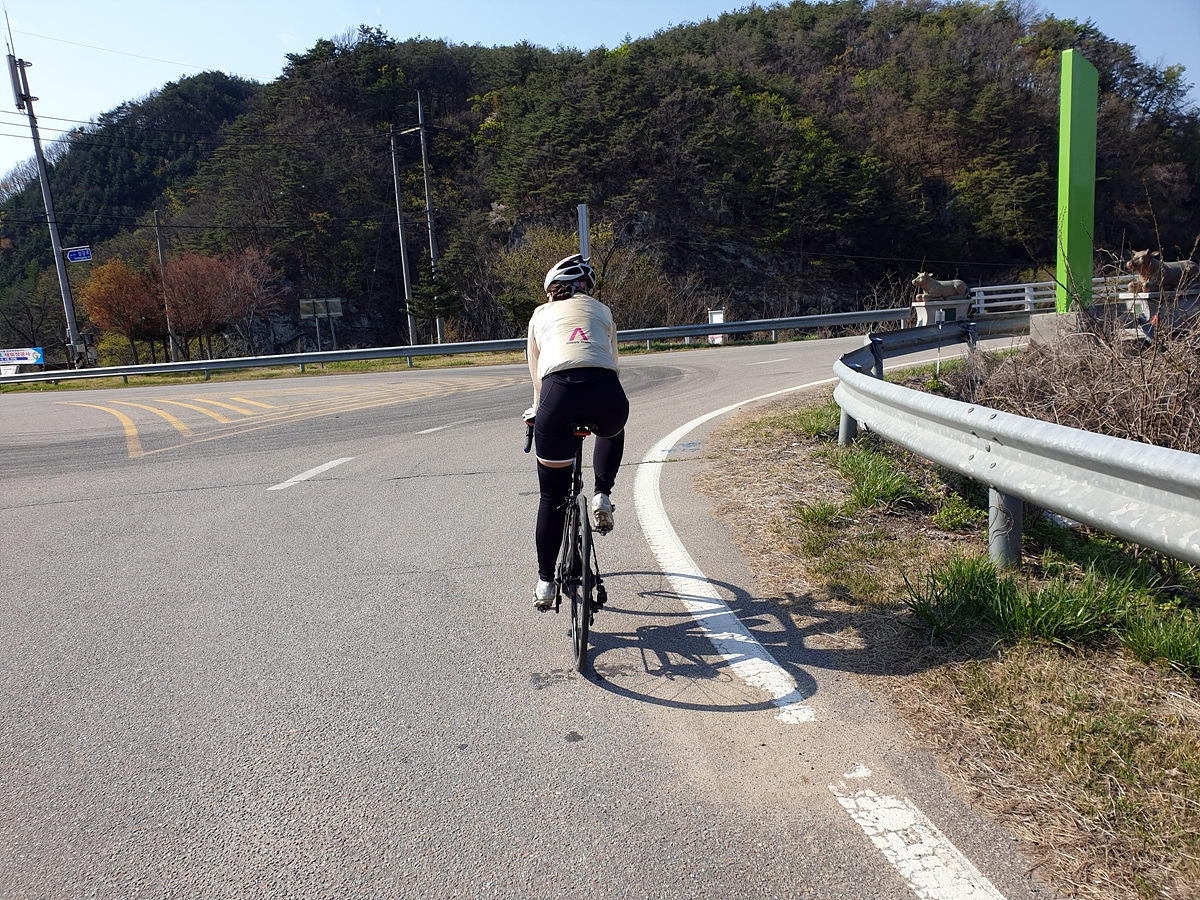 여기서부터 평지라면 얼마나 좋을까. 하지만, 아까 삼거현과 비슷한 높이의 마당재를 넘어야 한다. 올해 처음 자전거를 타는데 언덕길이 어느 정도 섞여있는 코스를 60km 정도 달리니 슬슬 지친다.