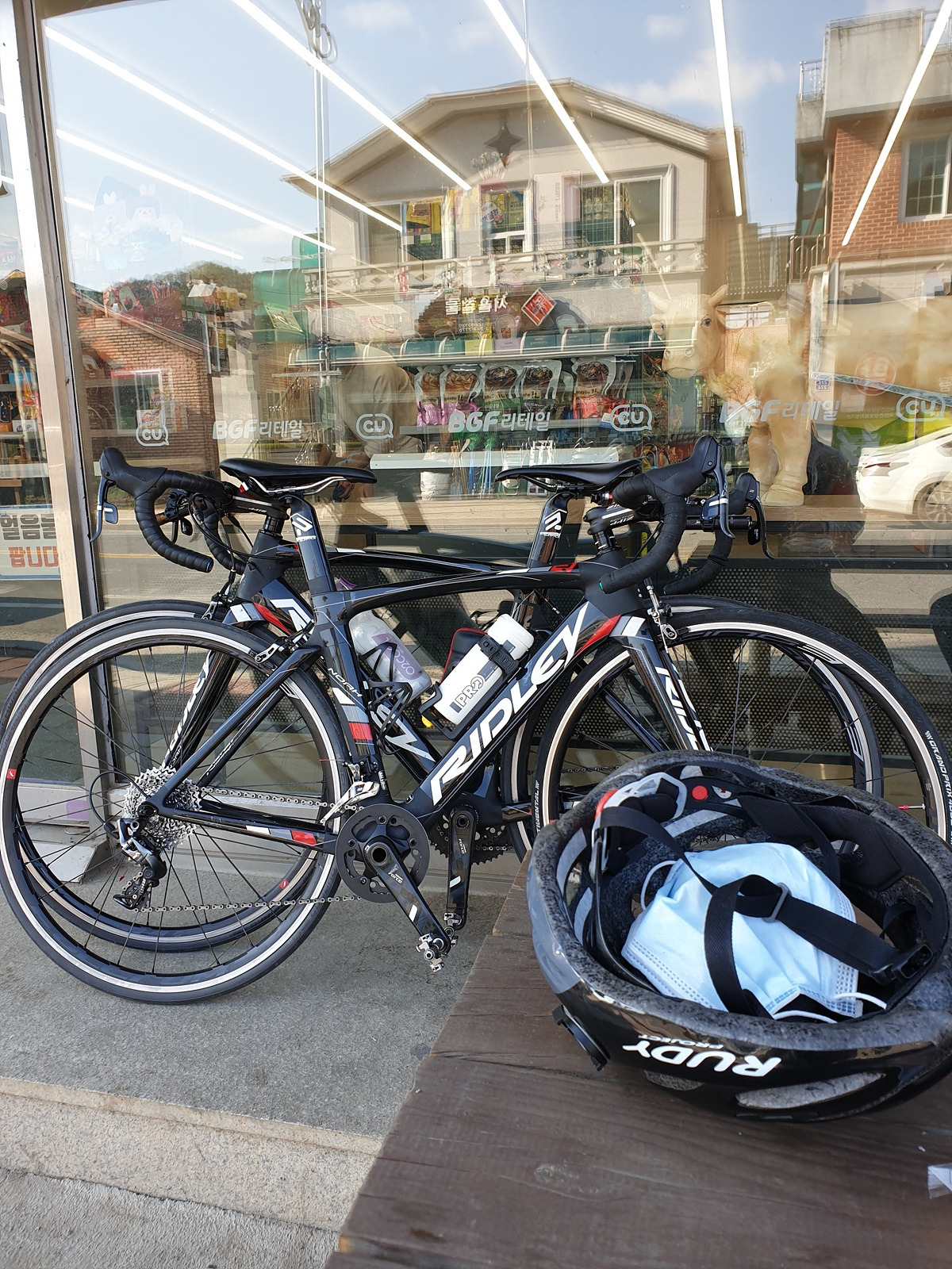 늦장을 부리면서 느긋하게 서원면사무소에 도착하니 주차장이 거의 비어있고 생각보다 자전거 타는 사람이 없다. 오늘은 이번 2021년의 자전거 시즌을 시작하는 날이다 보니 자전거 체인에 오일링도 하고 공기압도 체크한다. 깜빡한 것은 내 고글 밖에 없다.