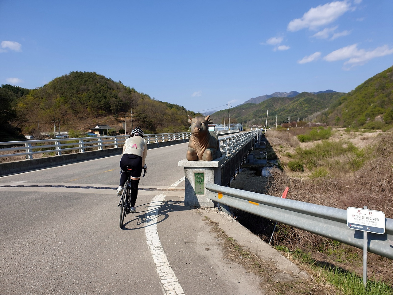다시 돌아 나오면 대관대교를 건너야 한다. 대관대교를 지키는 네 마리의 한우 동상이 인상적이다. 횡성 읍내 근처에서 자전거를 타게 되면 필연적으로 여러 번 건너게 되는 다리다.