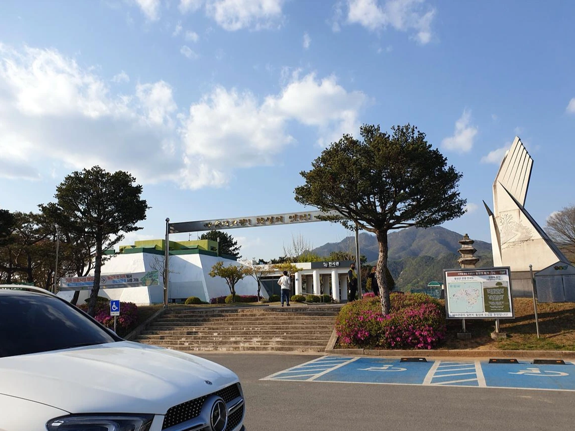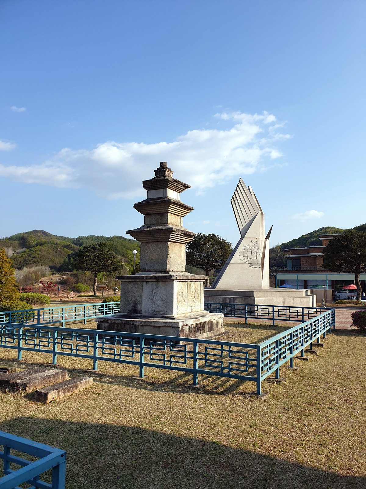 여기는 인증 포인트가 두 군데인데 어디서 찍어도 된다. 온 김에 두 군데 다 인증 사진을 찍는다. 망향의 동산 기념탑과 중금리 삼층석탑이다.