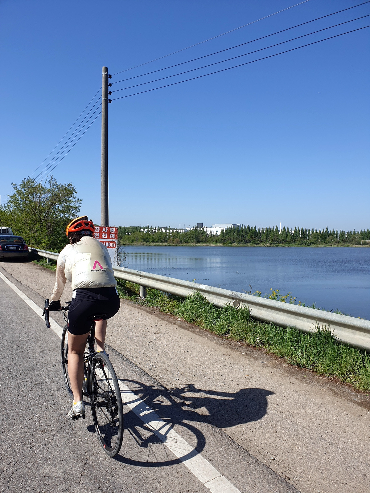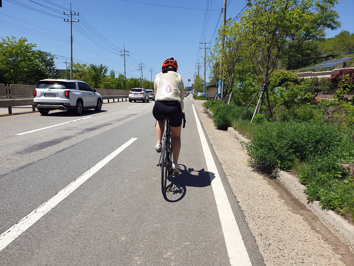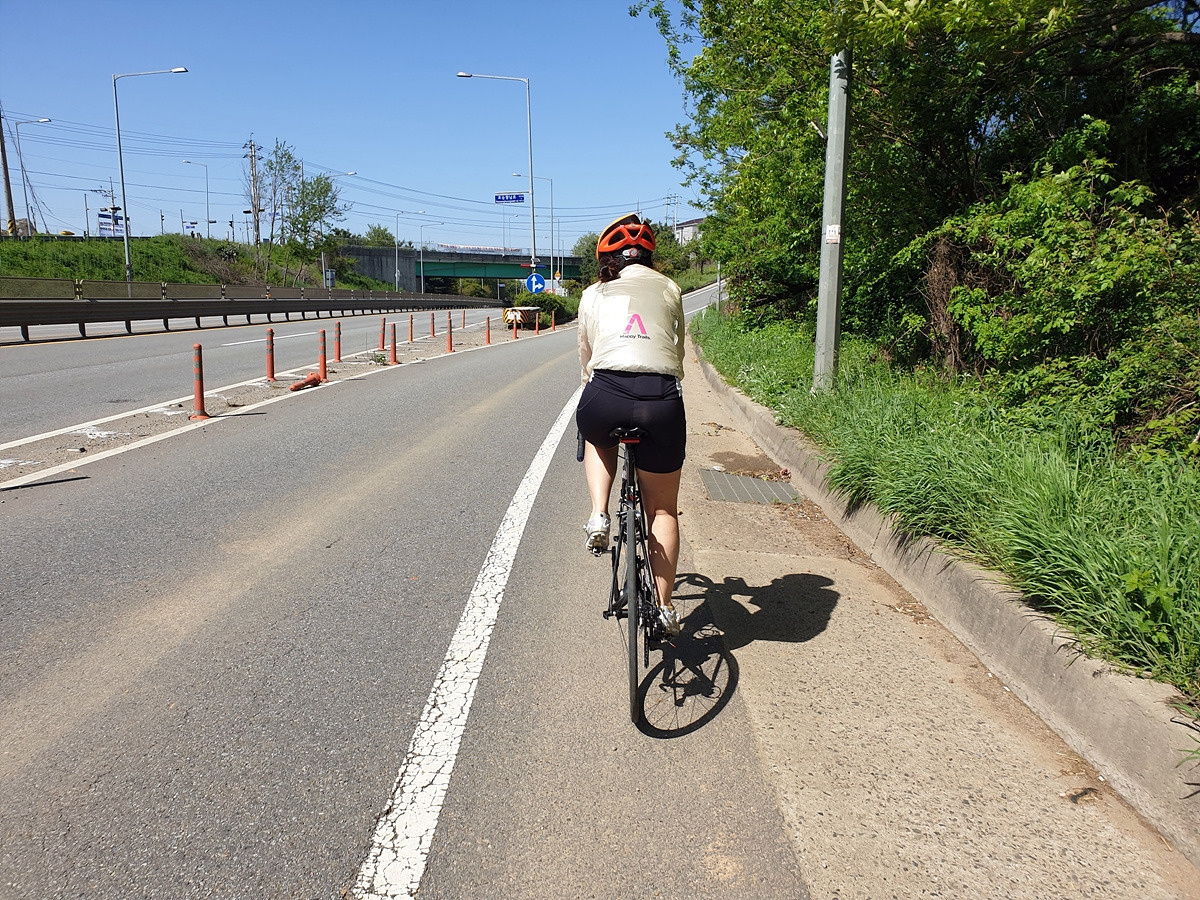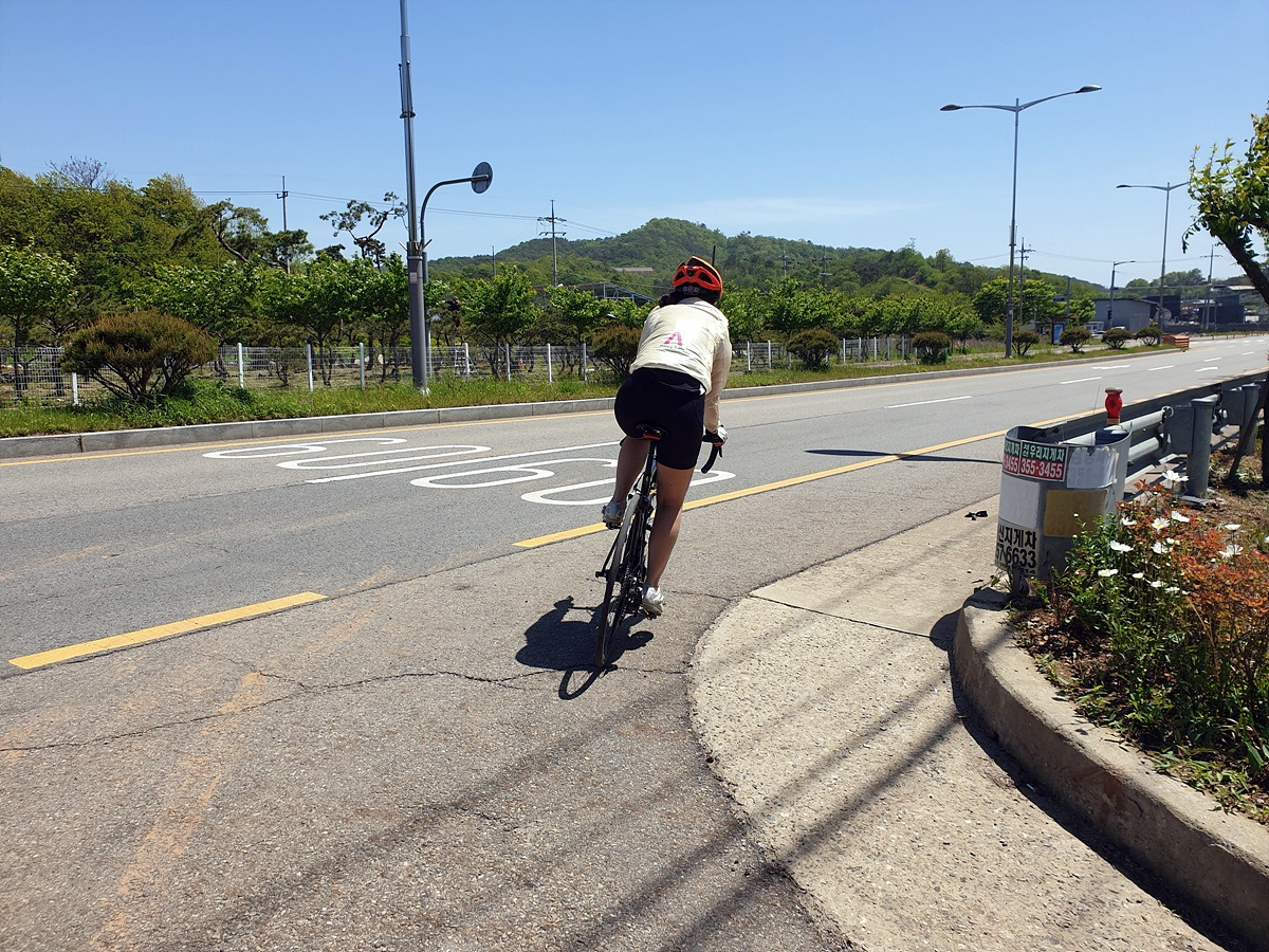 지금까지와 마찬가지로 자전거길 겸 보행로를 달려도 괜찮지만 도로도 차 없는 넓은 2차선이라 도로로 달려도 좋다.