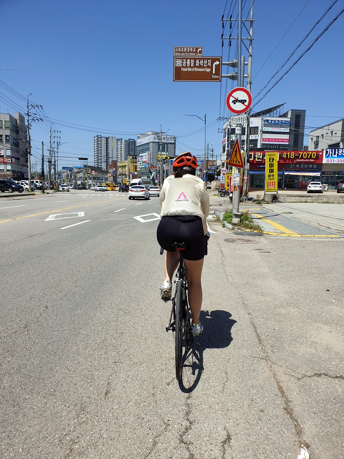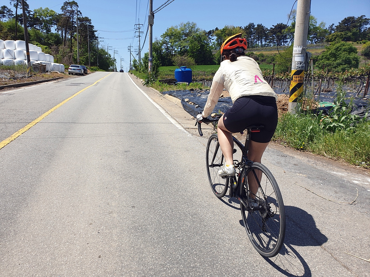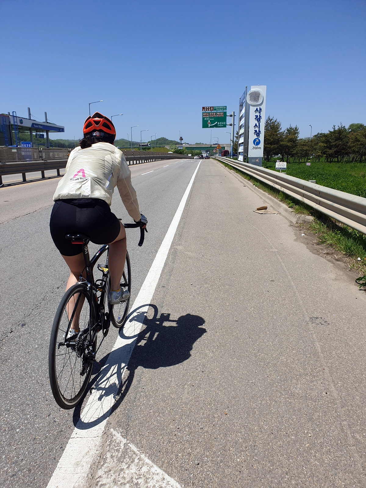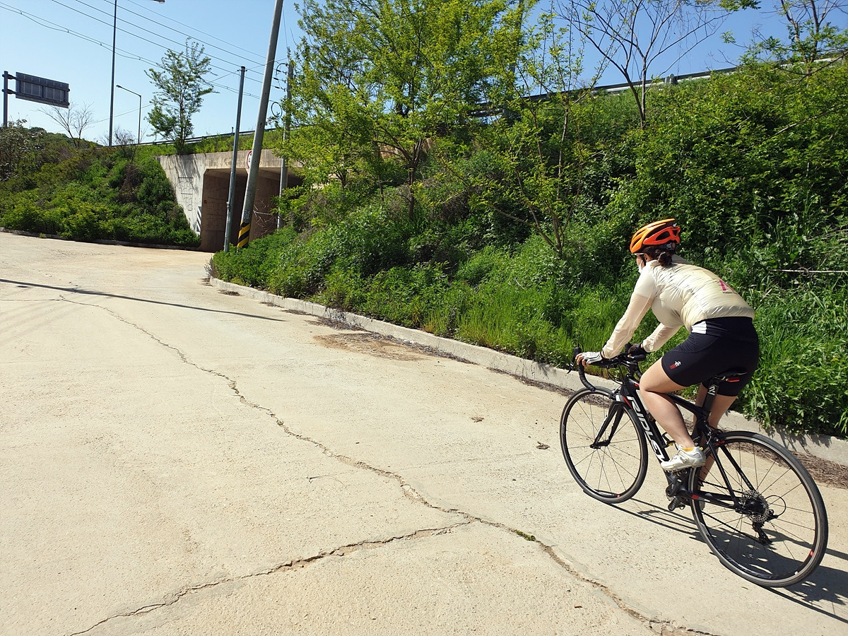 지금까지와 마찬가지로 자전거길 겸 보행로를 달려도 괜찮지만 도로도 차 없는 넓은 2차선이라 도로로 달려도 좋다.