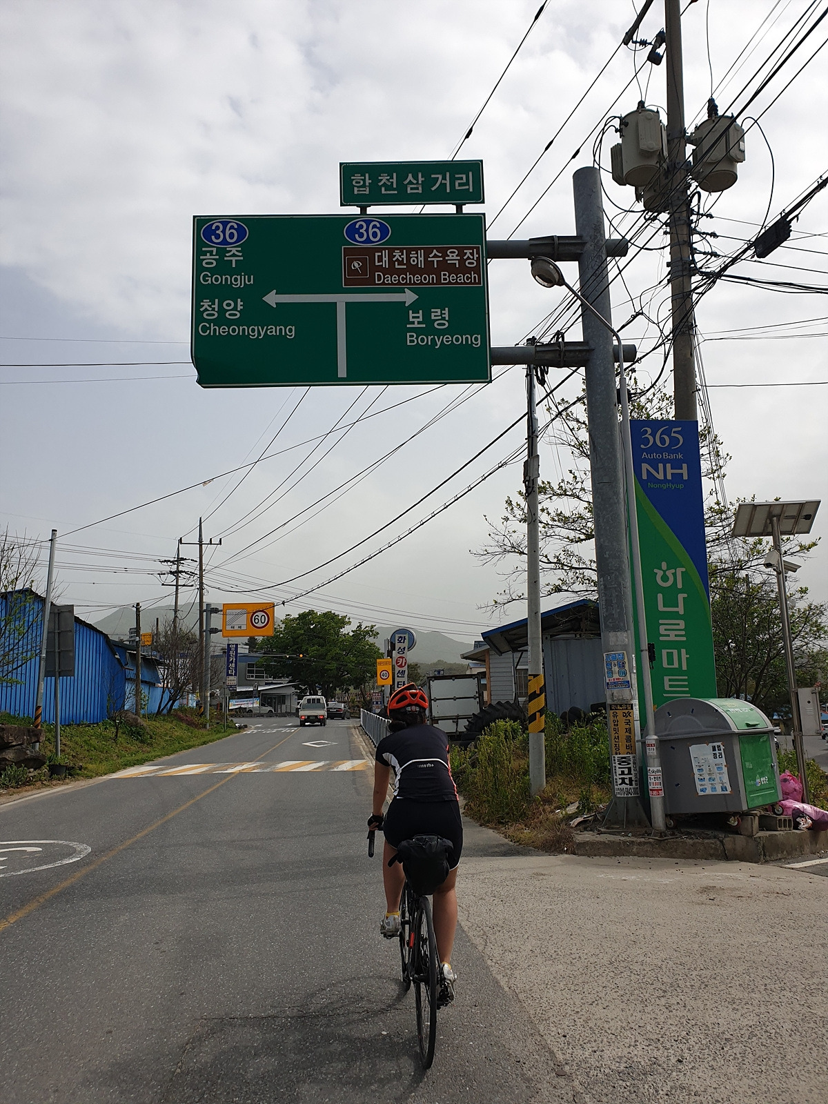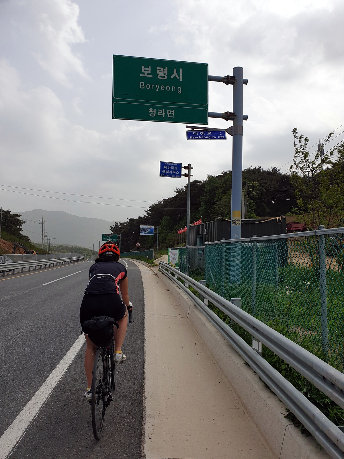 이제 36번 도로로 달려야 한다. 또 중앙분리대 있는 큰 국도다. 다행인 것은 국도를 잠깐 달리다가 보령 입구에서 자전거길로 내려가면 된다. 드디어 오늘의 목적지인 대천해수욕장으로의 이정표가 생겼다. 사실 여기 산정리에서 36번 도로와 합쳐지기 전에 청천저수지 방향으로 우회로가 있는데 맞바람에 지쳐버리니 조금이라도 단축해서 가고 싶다.