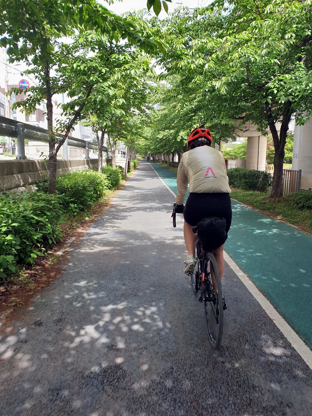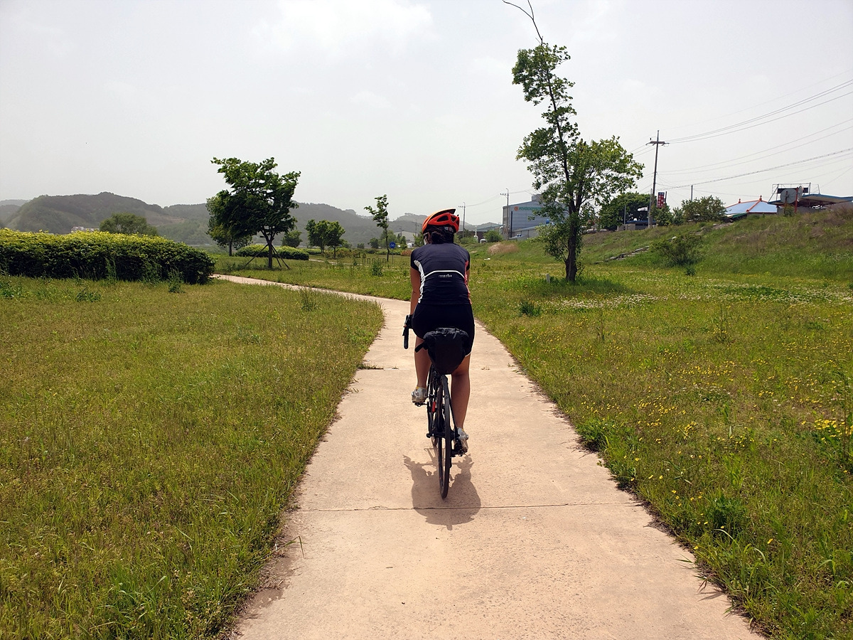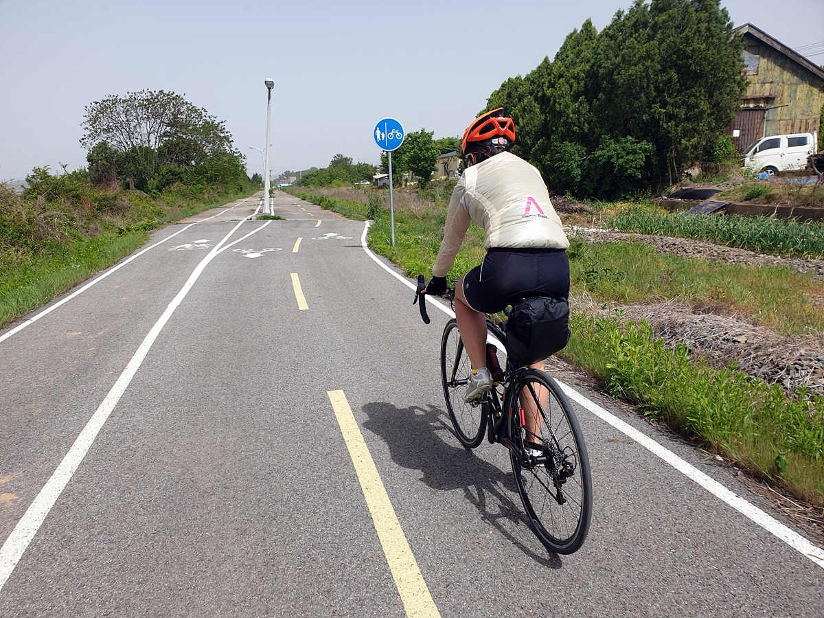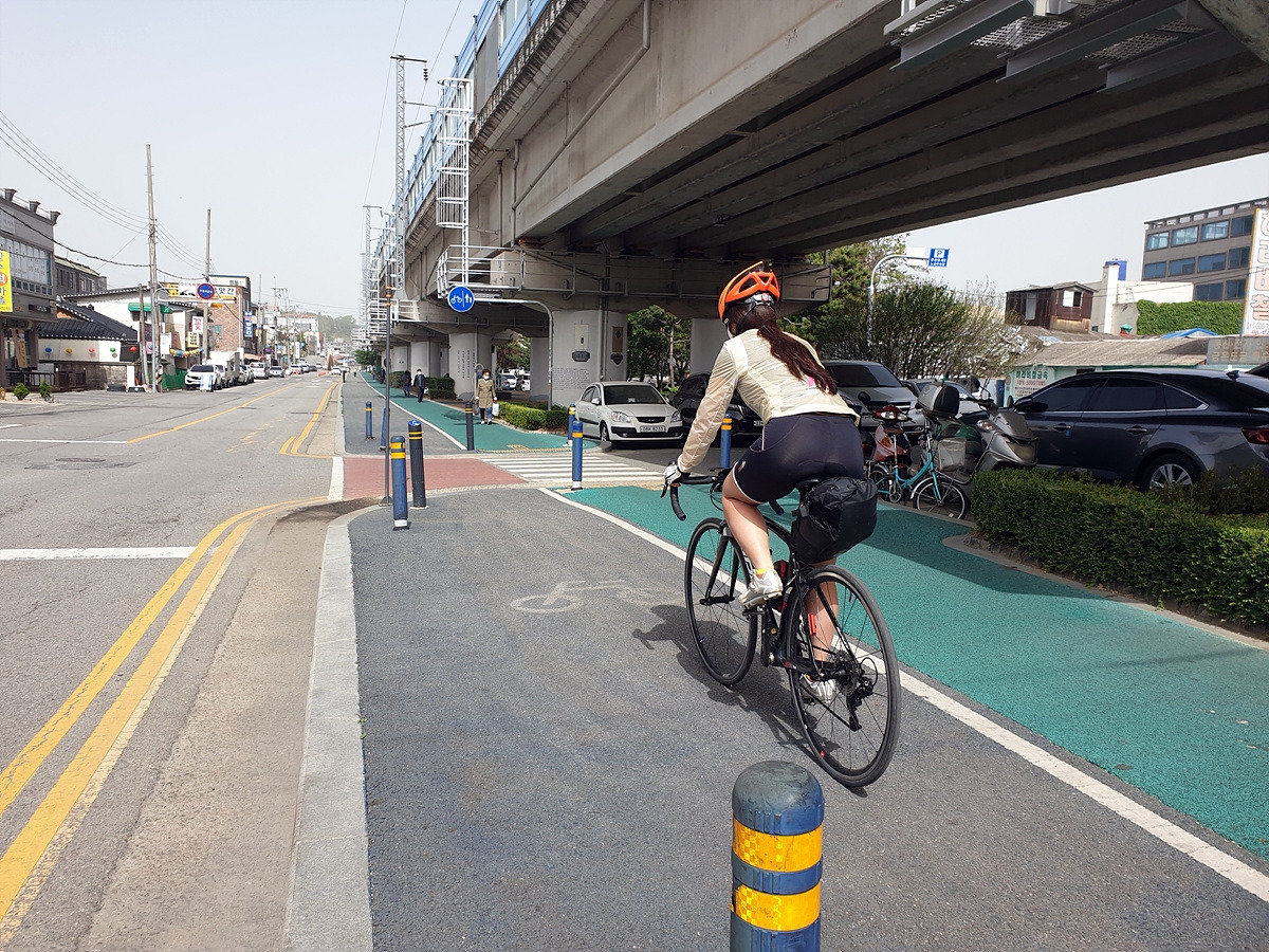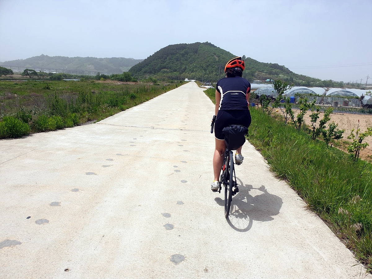 아침식사도 해결했으니 이제 출발이다. 아산 쪽의 1호선 전철길 아래에는 자전거길이 이어진다. 일단 이 길을 그대로 따라가면 된다. 사실 대천 쪽으로 빠르게 가려면 송악저수지와 광덕산을 지나가면 되는데 편하게 가려고 일부러 조금 돌아간다.