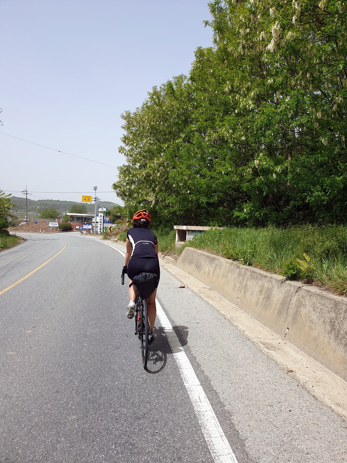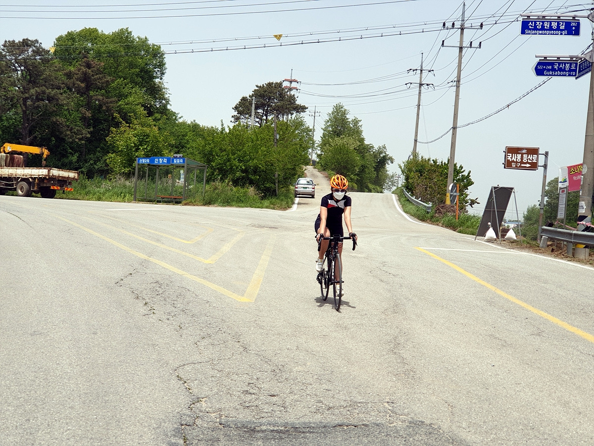 시끄러운 차들과 함께 달리기 싫어 청라면 쪽으로 조금 우회했다. 지니님이 V사인을 한다. 역시 차들이 없어야 마음의 여유가 생긴다.