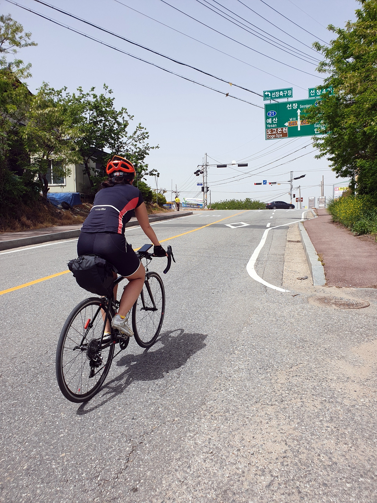 아산 폐철도 자전거길 다음은 예산의 무한천 자전거길로 갈 거다. 도고온천이 있는 도고면을 지나서 예산 방향으로 달린다. 이정표만 따라가면 된다.