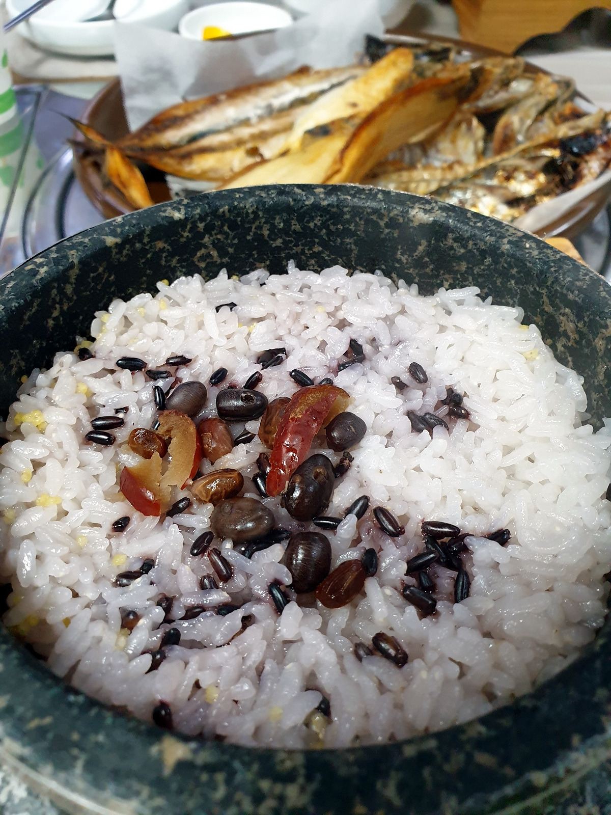 3000원을 추가하면 공기밥 대신 돌솥밥이 나오는데 비싼 만큼의 가치가 있었다. 공기밥이 천 원이니 이 돌솥밥 한 그릇이 4천 원이나 하는 셈인데 고슬한 밥이 생선구이와 잘 어울린다.