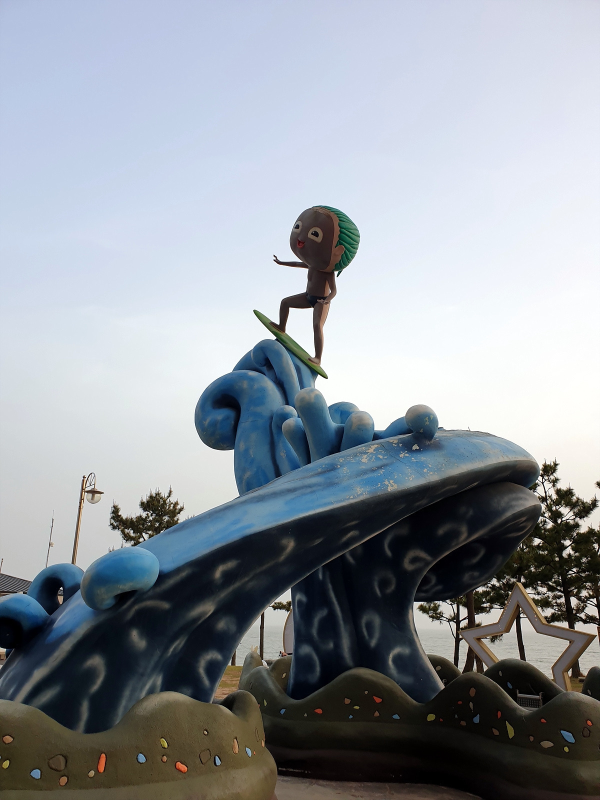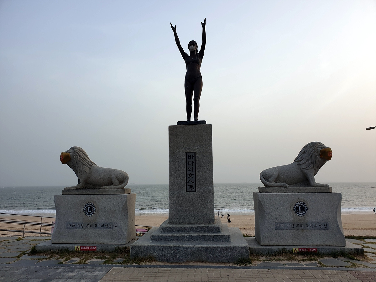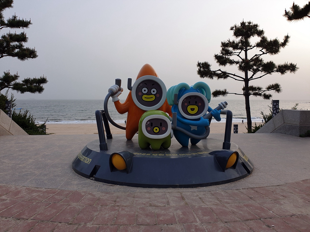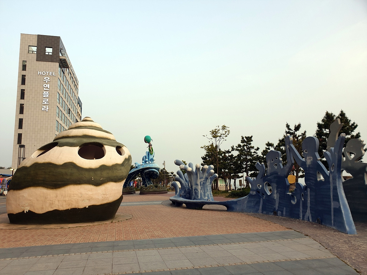 숙소에서 샤워를 한 후에 저녁을 먹으러 나온다. 대천 해수욕장이라 하면 머드 축제로 유명하다. 여기저기 다양한 조형물들이 있다.