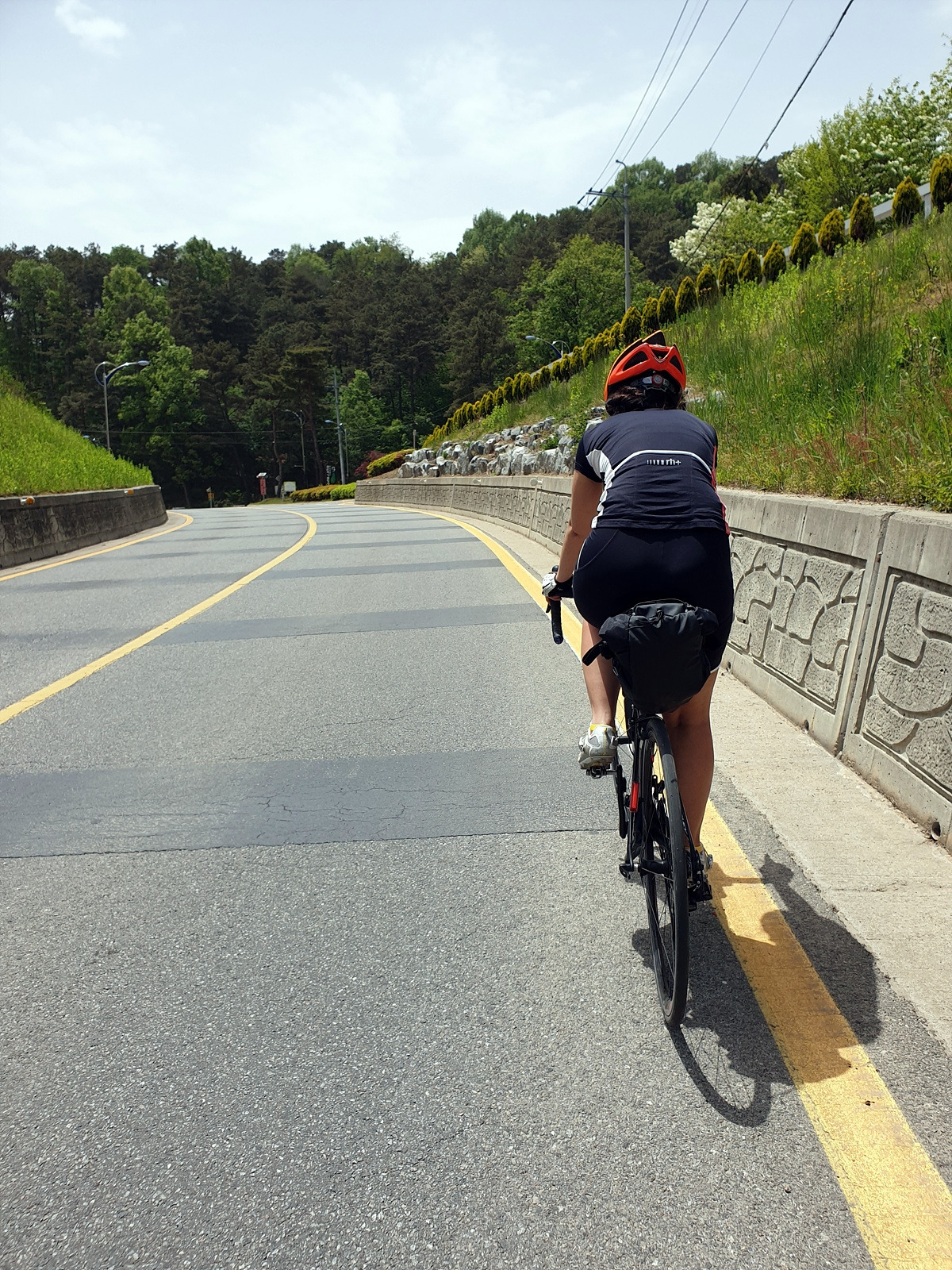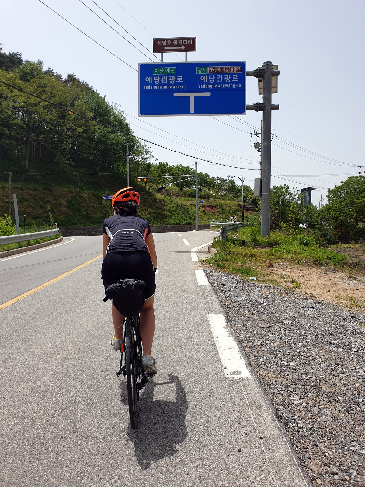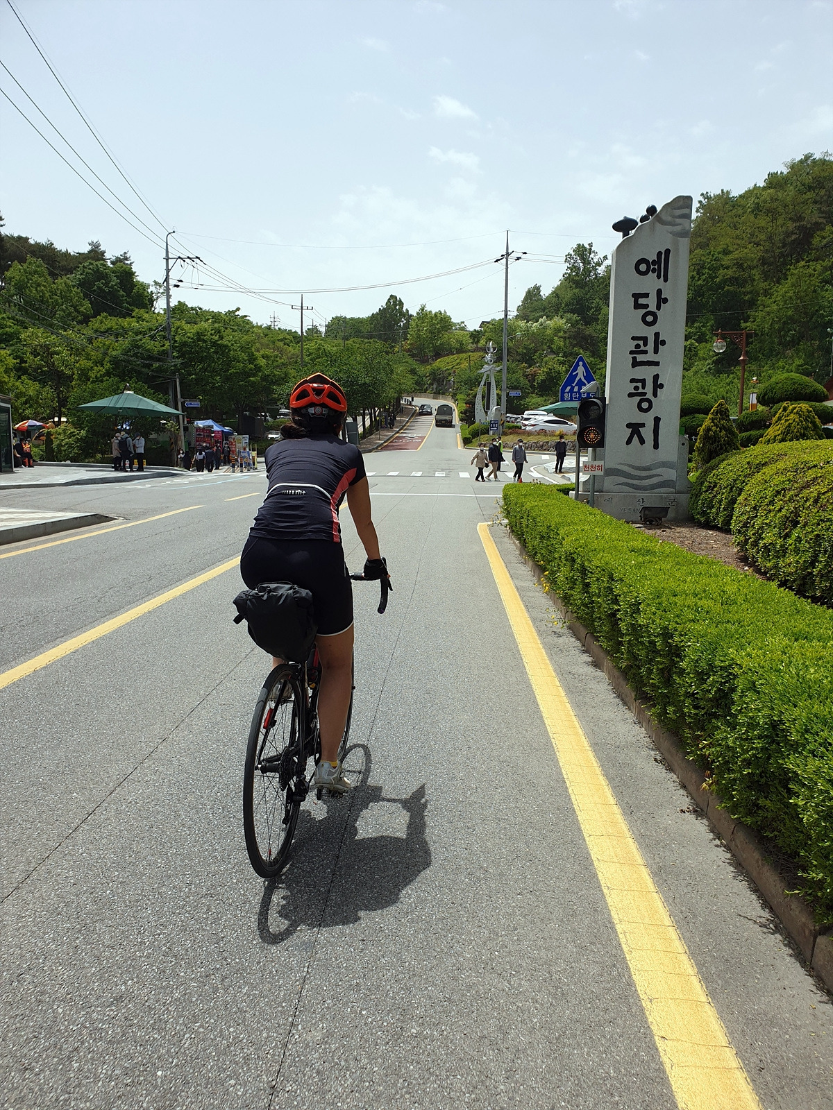 예당관광지에서 야트막한 오르막길을 넘어가야 한다. 예전에는 2단 미니벨로인 브롬톤으로 낑낑대며 넘어갔던 기억이 난다. 여기가 관광의 중심지인지 사람도 차도 많고 캠핑장 같은 것도 있다.