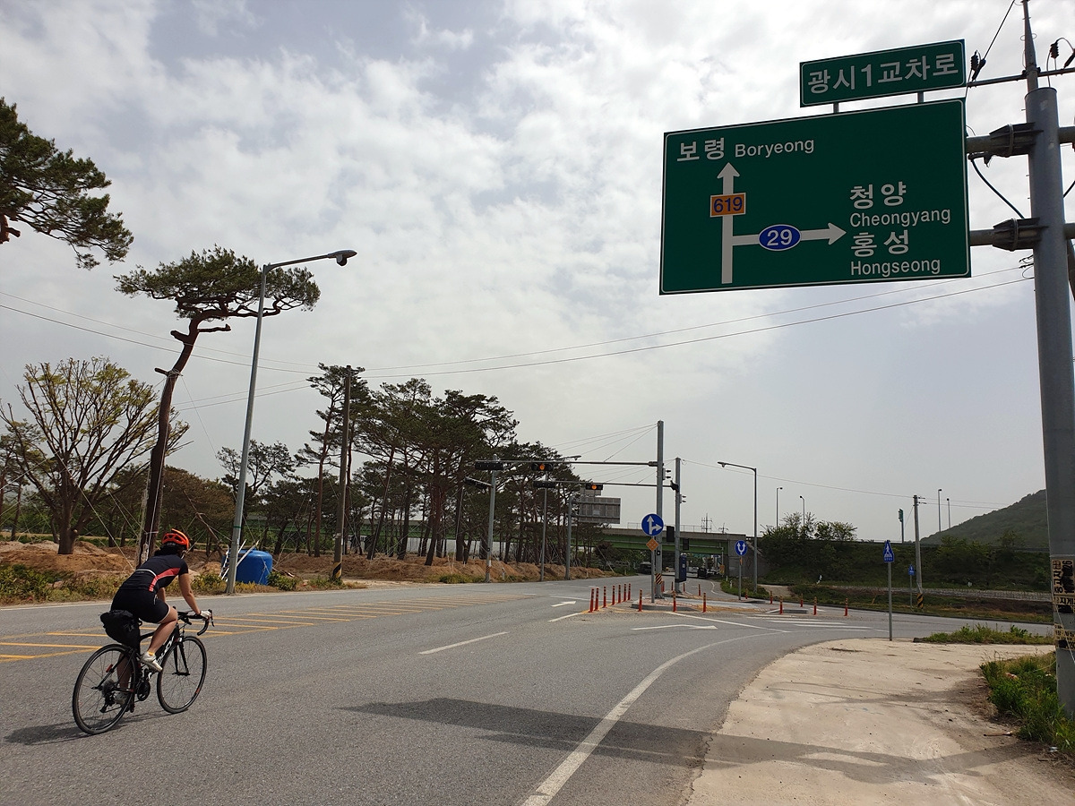 교촌리 입구인 교촌 삼거리에서 오른쪽으로 가면 큰길을 달려서 홍성을 지나 서산방조제로 갈 수 있다. 오늘은 여기서 광시를 지나 보령으로 간다.