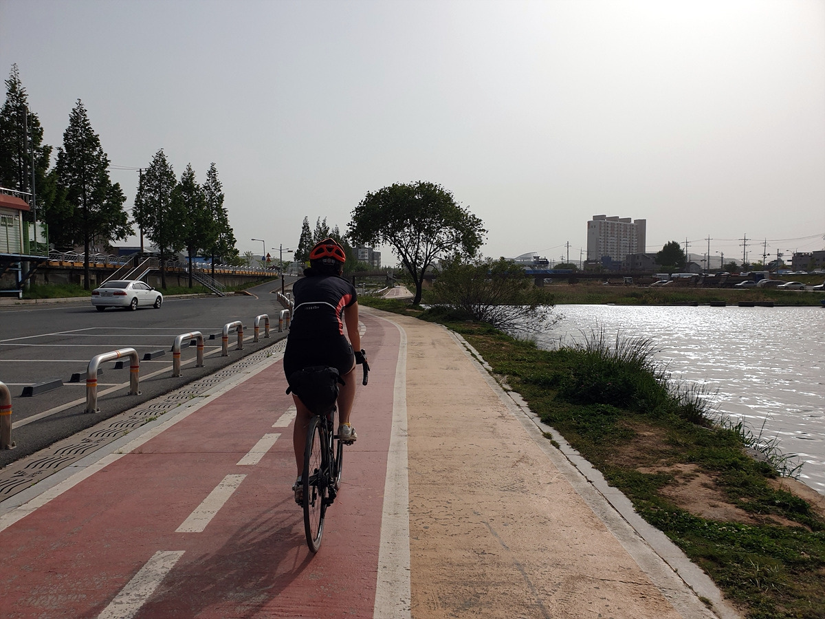 분명히 화창한 날인데 주변 풍경이 뿌옇다. 사실 오늘은 올해 미세먼지가 가장 심한 날이다. 말도 안 되게 높은 미세먼지 농도를 보고 자전거를 탈지를 망설였지만 이미 예약해둔 숙소를 취소하긴 아까우니 예정대로 달리기로 했다.