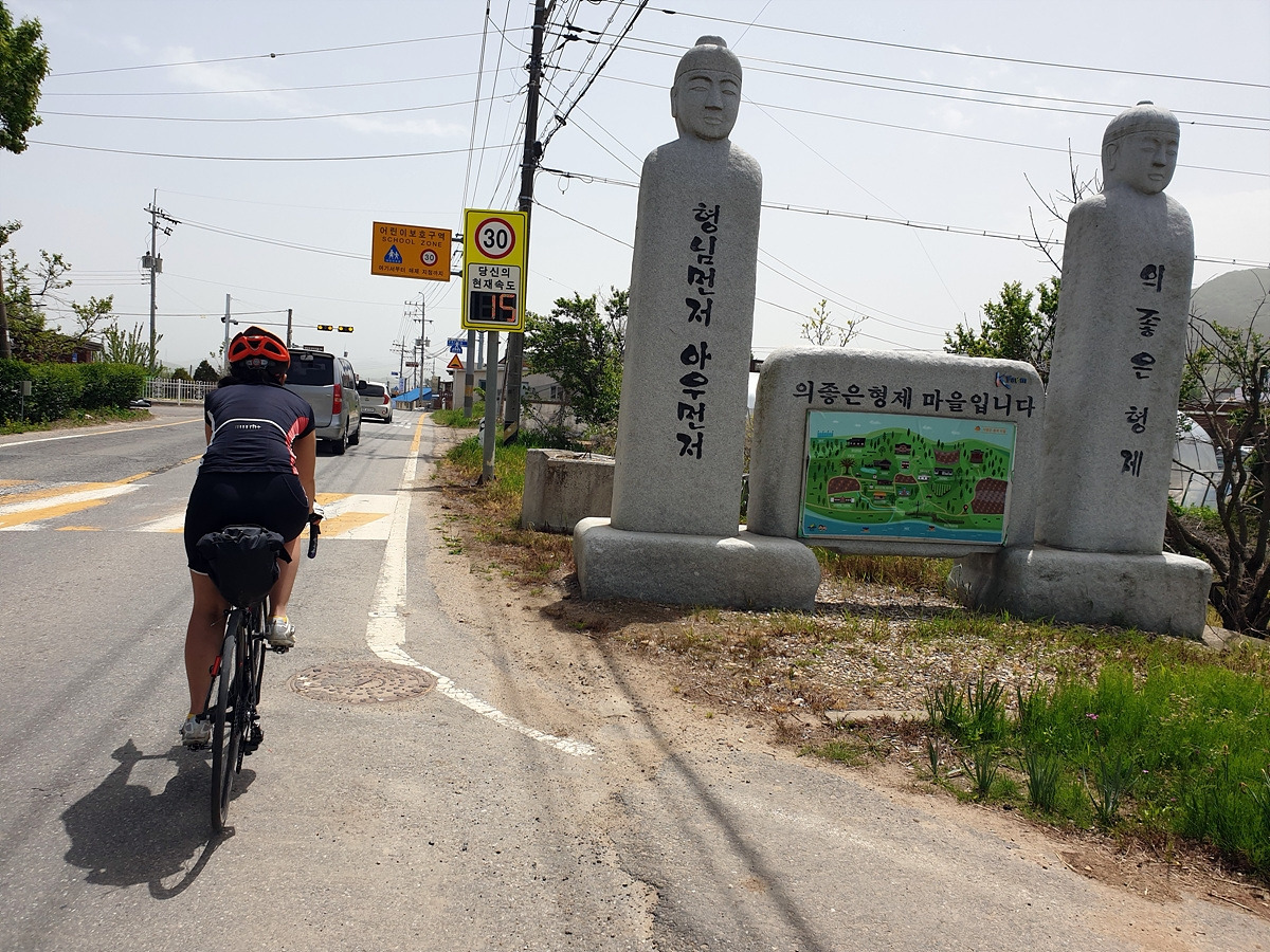 달리다 보면 의좋은 형제 마을이라는 조형물을 볼 수 있다. 교과서에 나오는 우애 깊은 형제의 이야기가 이곳 대흥면에서 있었던 실화라고 한다.
