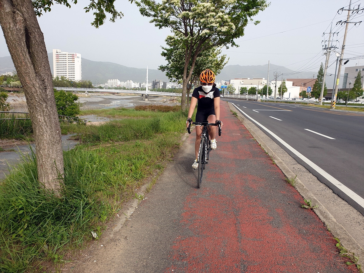 대천천 제방길을 달리다가 자전거도로로 내려가면 이제 고생 끝이다.