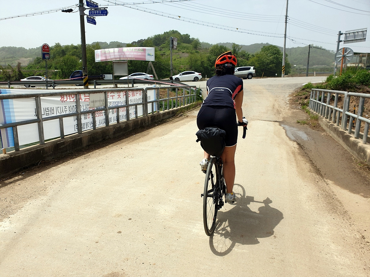 자전거길을 좌안으로 갈까, 우안으로 갈까 고민하다가 경로상 편한 우안으로 갔더니 제방길은 포장 상태가 안 좋다.