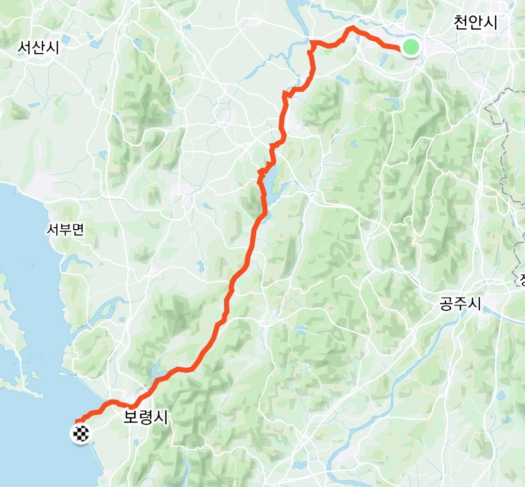 자전거길은 대천항에서 끝난다. 오늘 차들하고 함께 달리는 도로가 많았는데 이 동네는 전체적으로 운전을 이상하게 하는 사람들이 상당히 많은 듯하다. 다양한 짓을 하는 이상한 운전자들을 계속 마주쳤다.