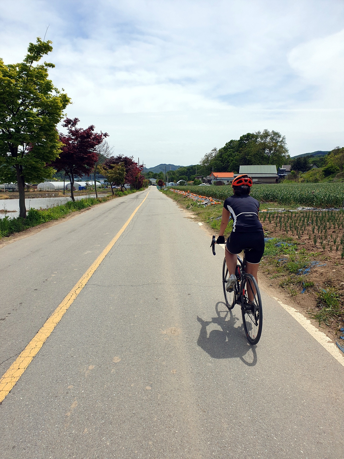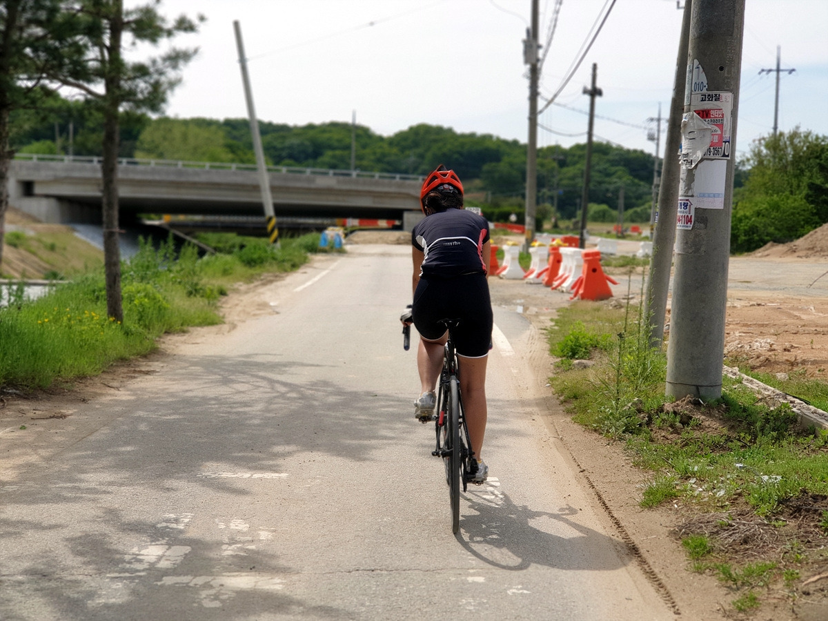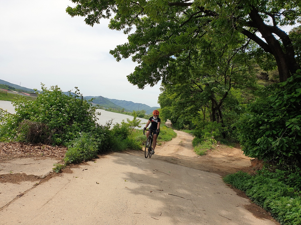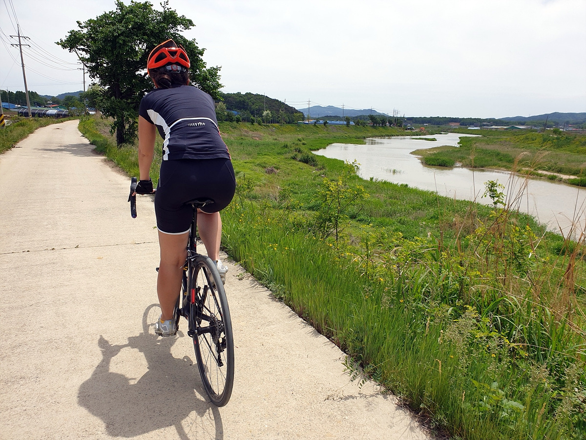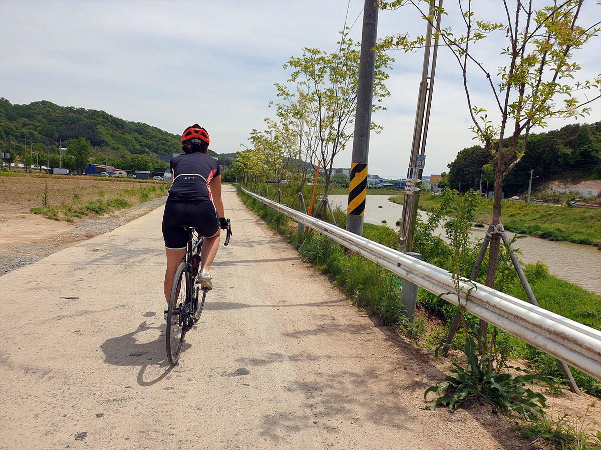 이제 청미천길을 따라 달리면 된다. 아카시아 향기도 가득 나고 날씨도 좋다. 길 자체는 시멘트 포장길이라 조금 거칠지만 로드 자전거를 타기에도 문제는 없다.