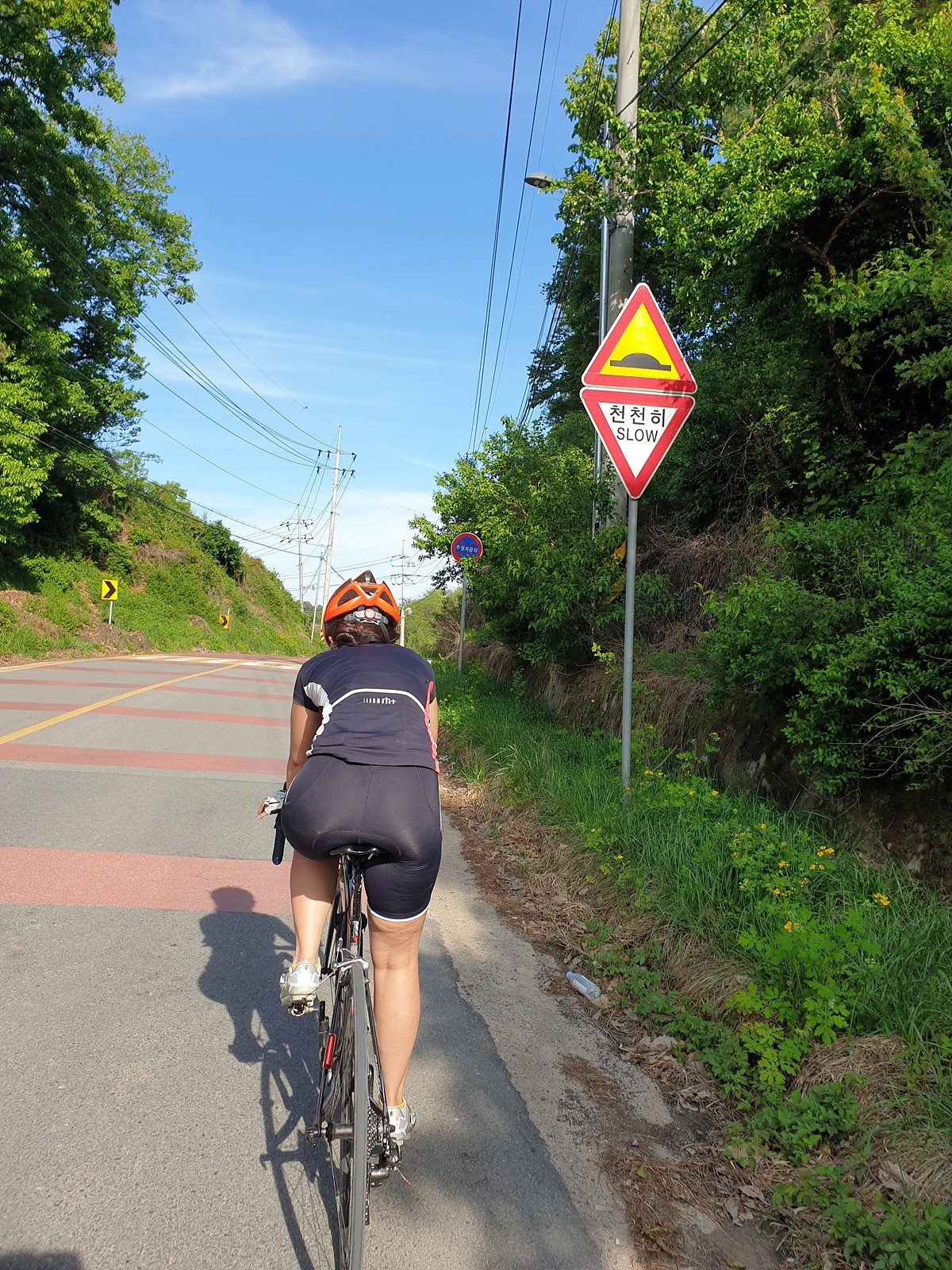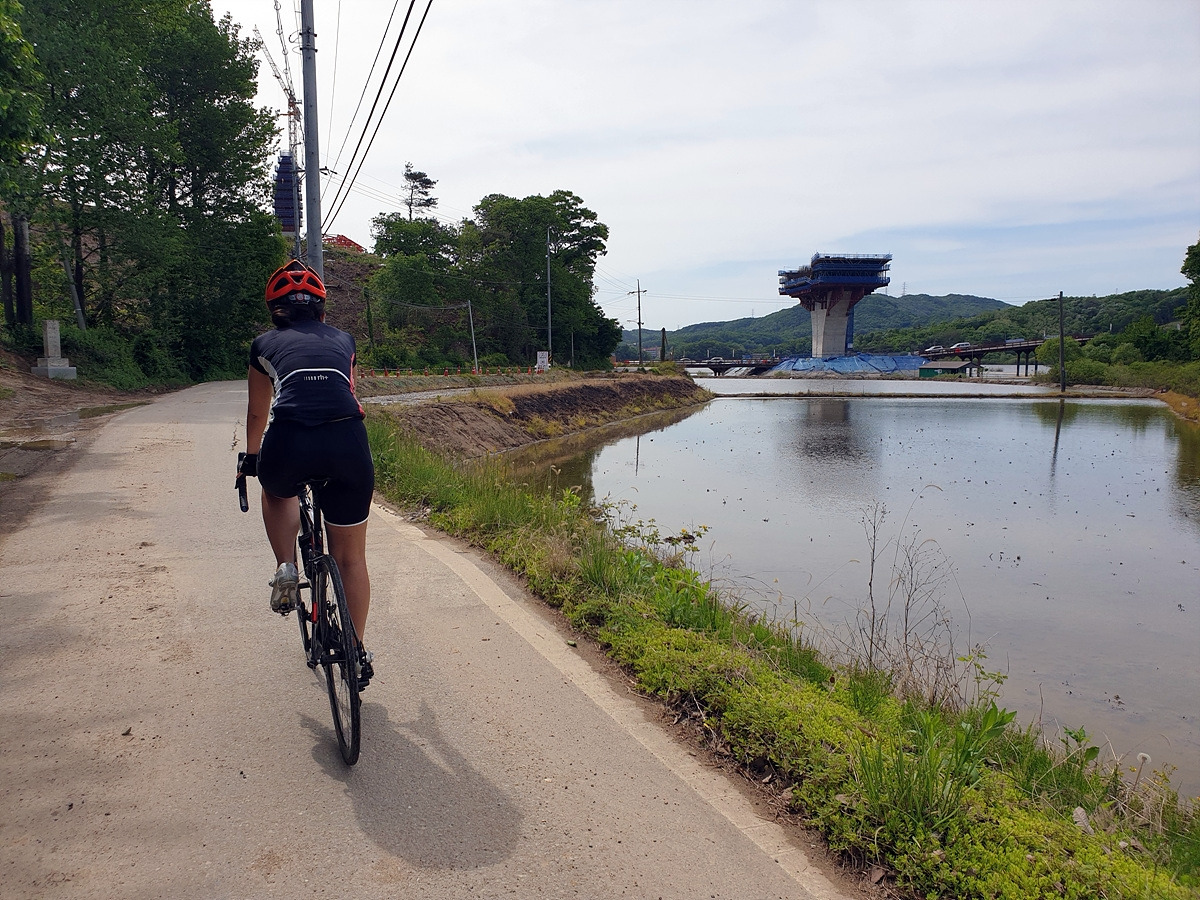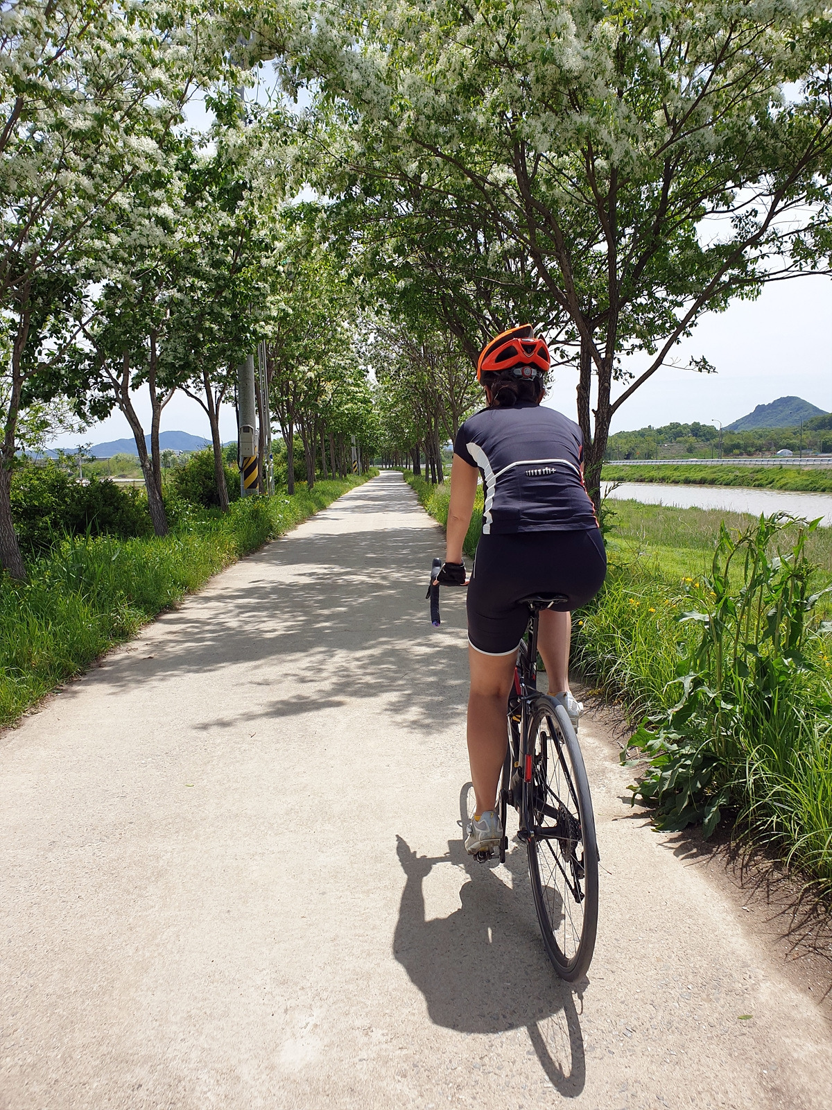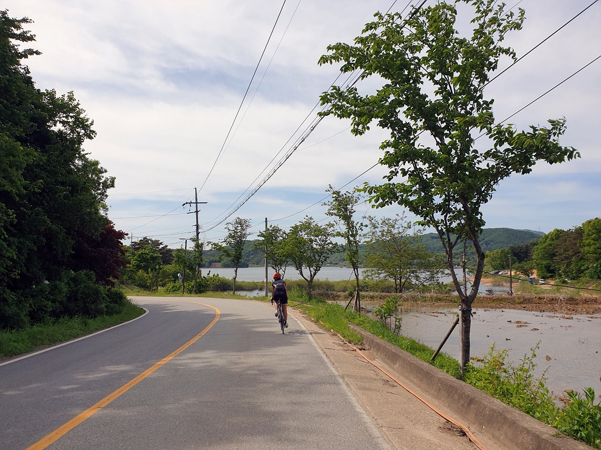 이제 청미천길을 따라 달리면 된다. 아카시아 향기도 가득 나고 날씨도 좋다. 길 자체는 시멘트 포장길이라 조금 거칠지만 로드 자전거를 타기에도 문제는 없다.