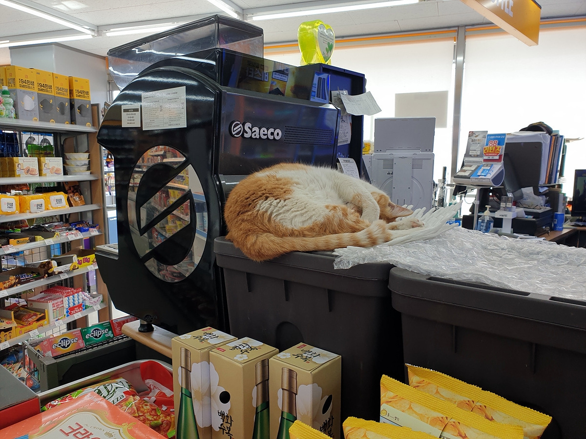 고삼면 읍내 사거리에 고양이가 사는 편의점이 브랜드가 바뀌었다. 즉석조리 식품이 없으니 지니님이 실망한다. 그래도 경로를 벗어나 더 멀리 가기가 싫어서 여기서 잠시 쉰다.
