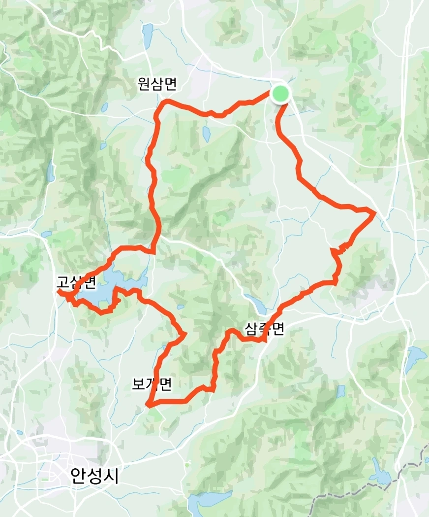 오늘은 백암면에서 출발해서 용인과 안성의 사이의 시골길을 이어 달렸다. 용인이나 안성의 외곽 지역도 수도권이라 그런지 큰 주요 도로는 차량 통행이 만만찮다. 그렇기에 현지인이 아닌 외지 사람들은 생각보다 심한 교통량에 당황할 수도 있는 곳이다. 이번에는 내가 아는 마을 사잇길을 엮어서 최대한 한적한 길을 달려보았다. 우리나라의 유명한 지역까지 멀리 가서 자전거를 타는 것도 좋지만 이렇게 멀지 않은 곳에서 소소하게 경치를 보며 달리는 것도 재미있는 방법이다.