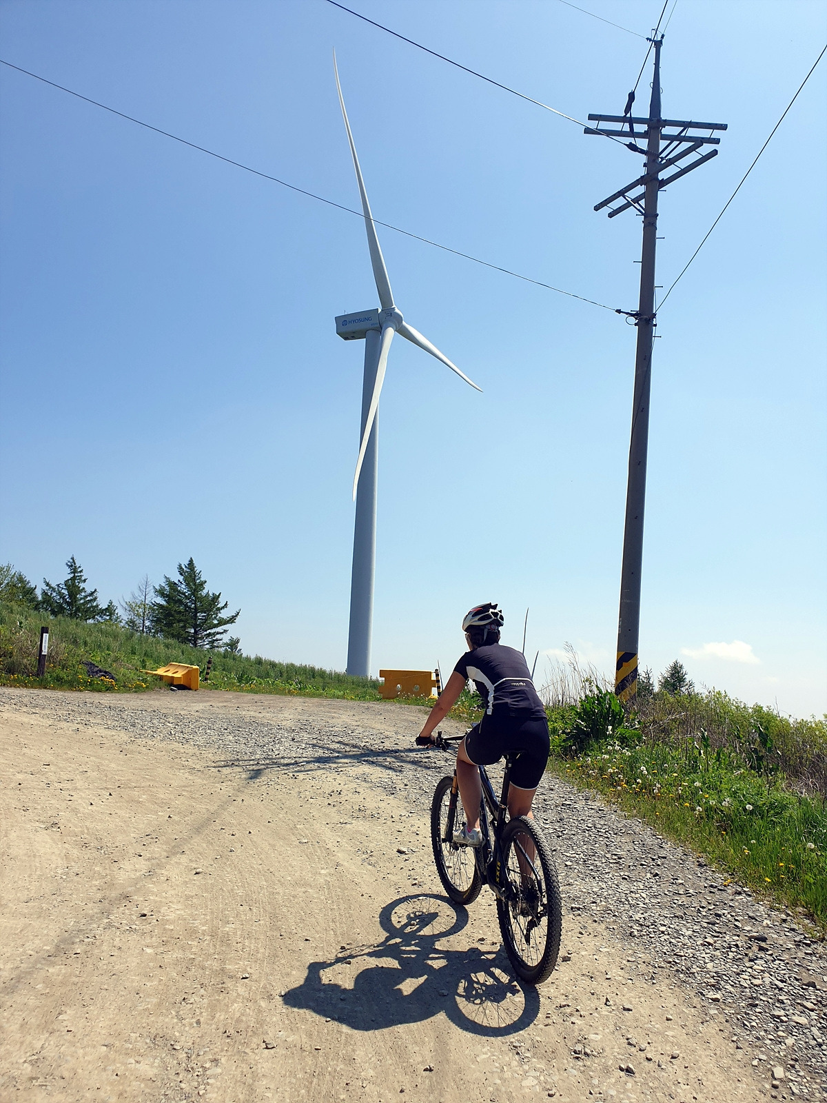 오르막을 올라가는 건 힘들고 오래 걸리지만 내려가는 건 정말 순식간이다. 벌써 풍력발전기들이 언덕 위로 보인다.