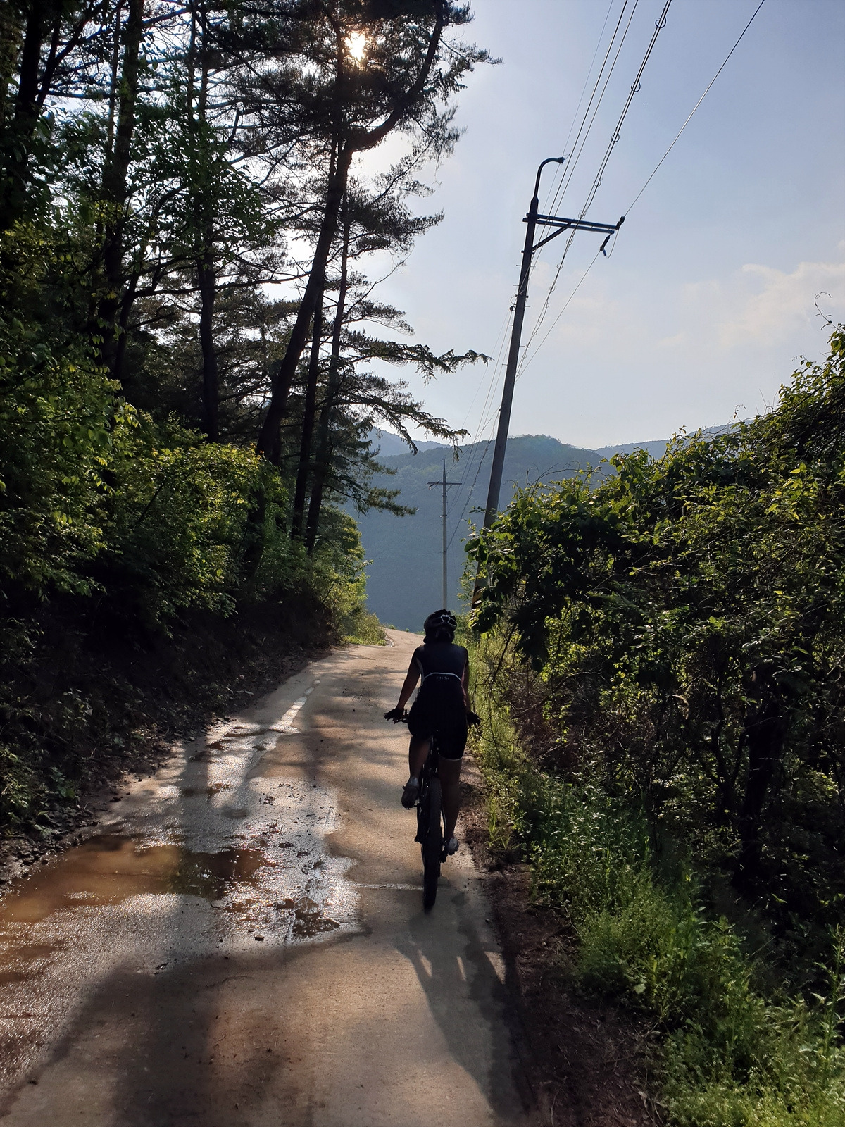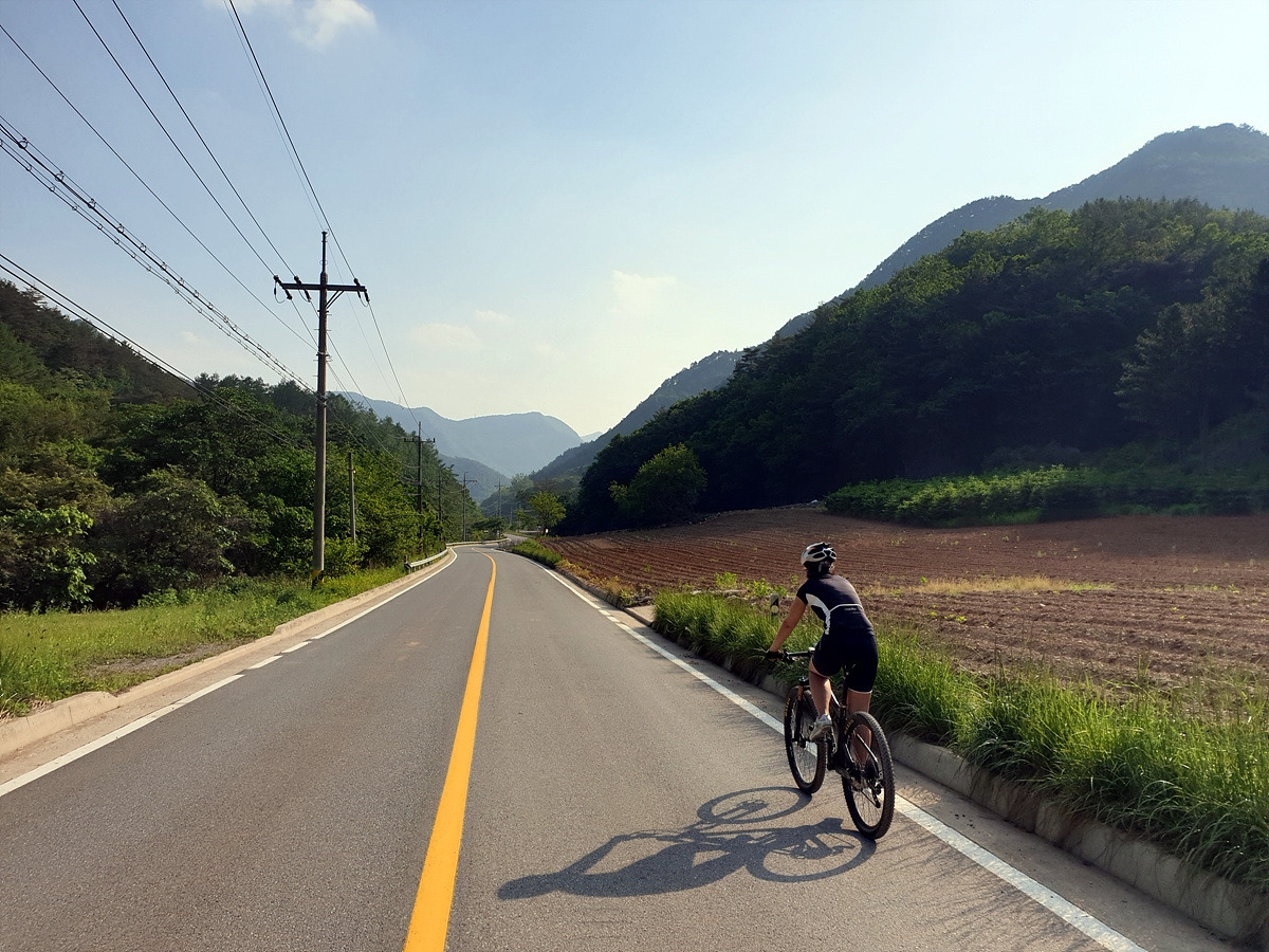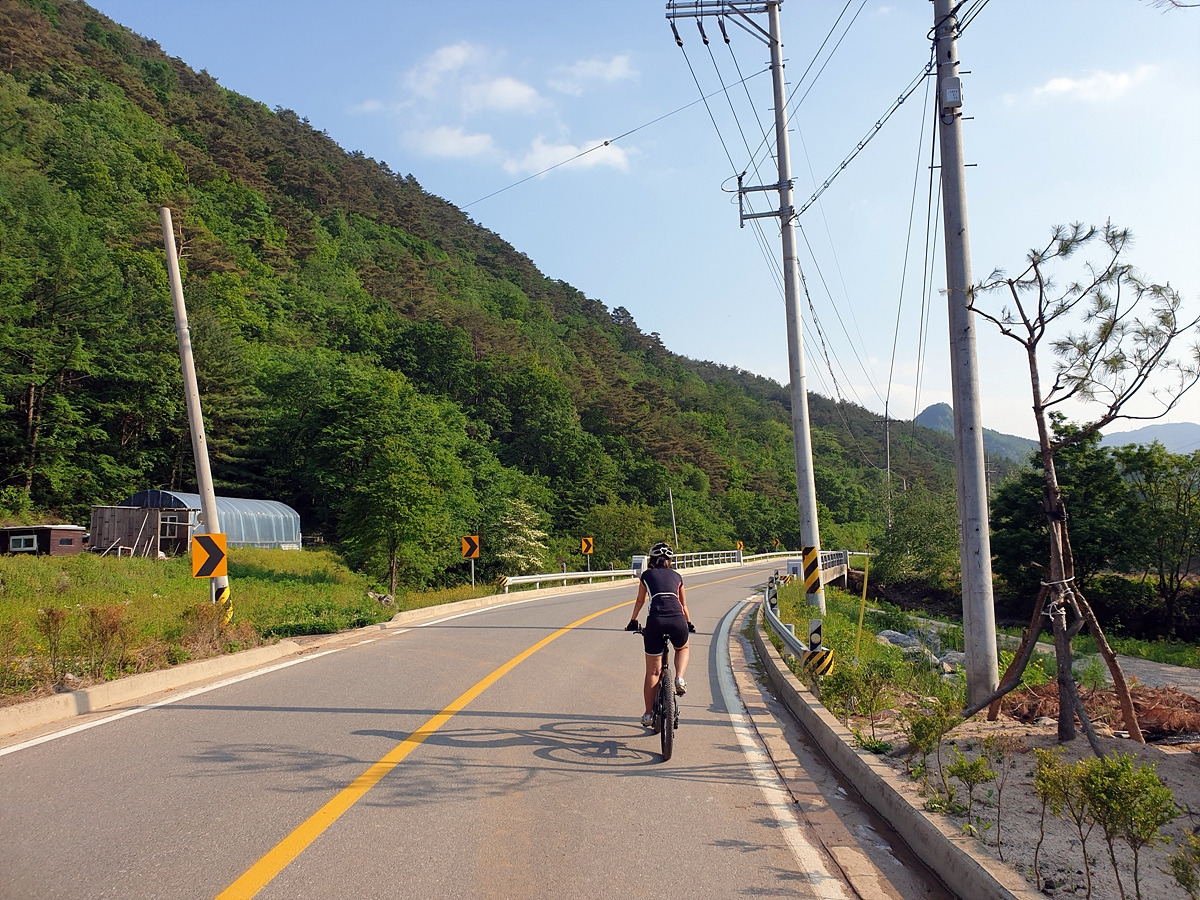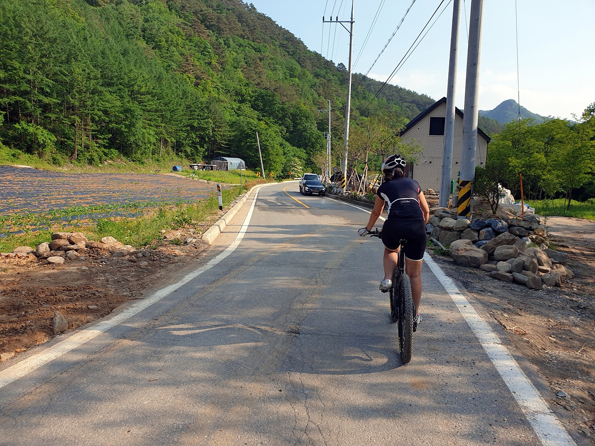 민가로 내려가면 계속 길이 이어지다가 포장길이 나온다. 이제 읍내까지 슬슬 달리면 된다.